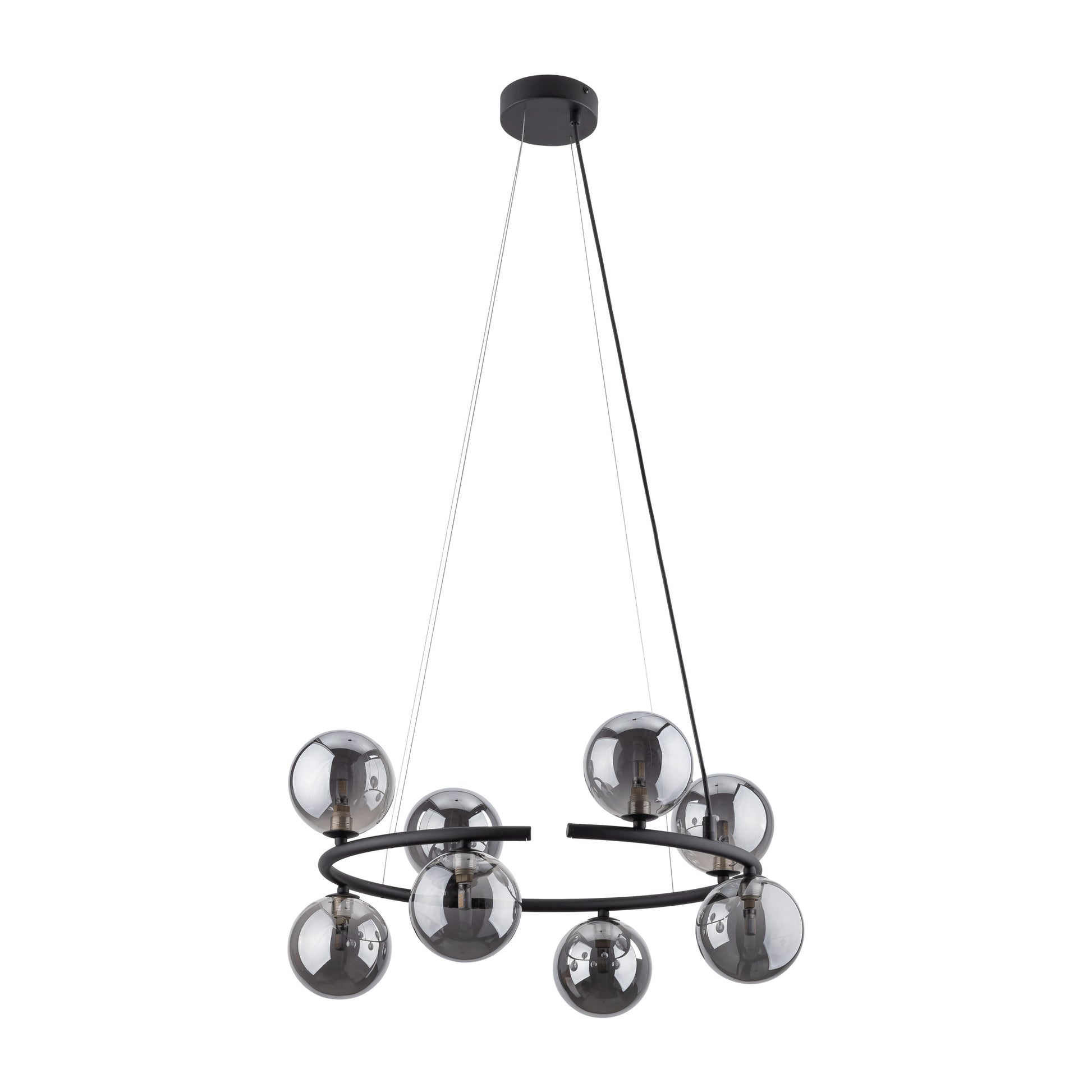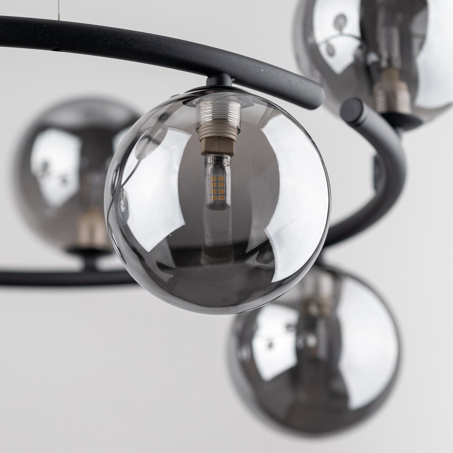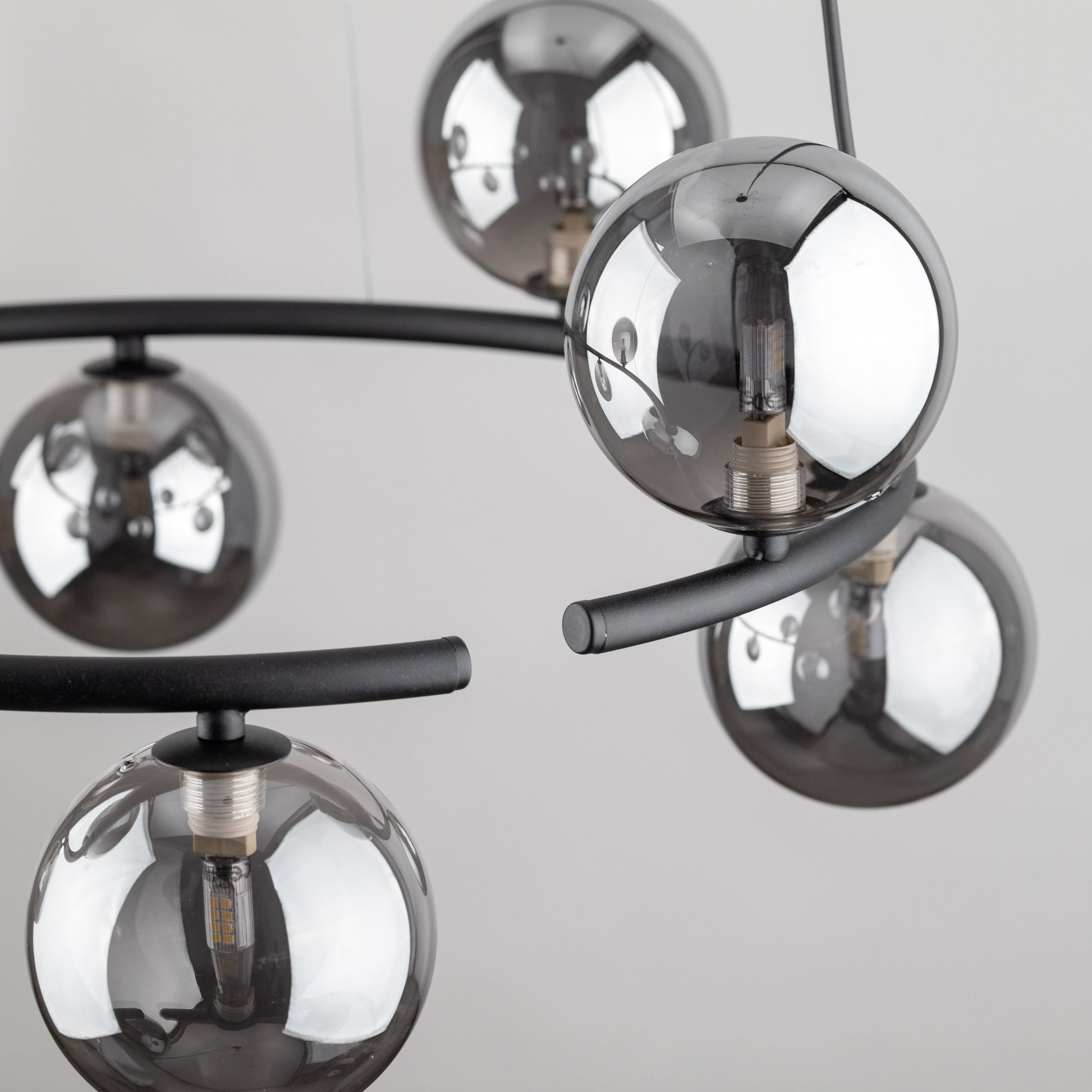 Anabelle lampu kolekcija piedāvā ne tikai unikālu dizainu, bet arī plašas apgaismojuma iespējas. Uz viena vai diviem lampu apļiem atradīsiet skaistas grafīta spoguļa un dzintara krāsas sfēras. Šī kombinācija rada pārsteidzošu efektu, kas atdzīvina jebkuru interjeru un piešķir tam mājīgu, siltu raksturu. Atbilstoši izvietotie gaismas avoti radīs relaksācijas un miera atmosfēru, kas ir ideāli piemērota vakara tikšanās reizēm ar draugiem vai relaksējošam vakaram ar grāmatu. Turklāt Anabelle 6, 8 un 9 liesmu piekaramie gaismekļi sniedz jums iespēju personalizēt apgaismojumu jūsu mājās. Jūs varat regulēt liesmu skaitu, lai izveidotu unikālu apgaismojuma kompozīciju, kas atbilst jūsu vajadzībām un vēlmēm.