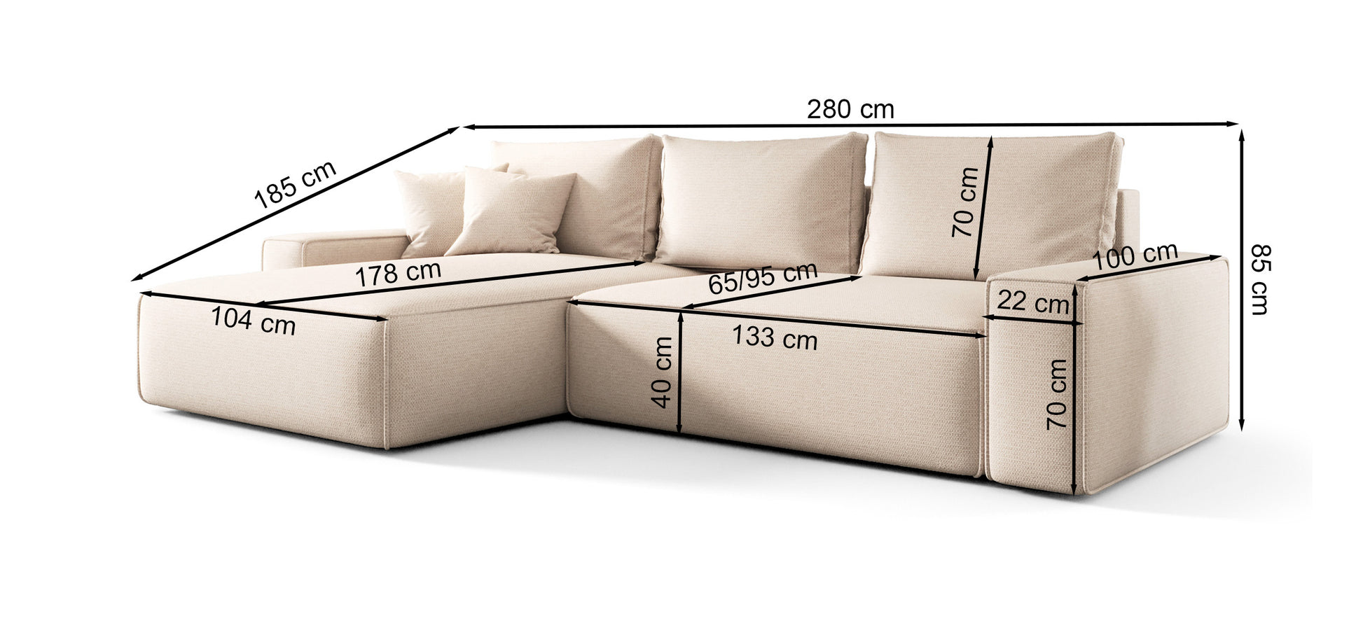 Sēdekļa dziļums bez spilveniem: 95,00 cm