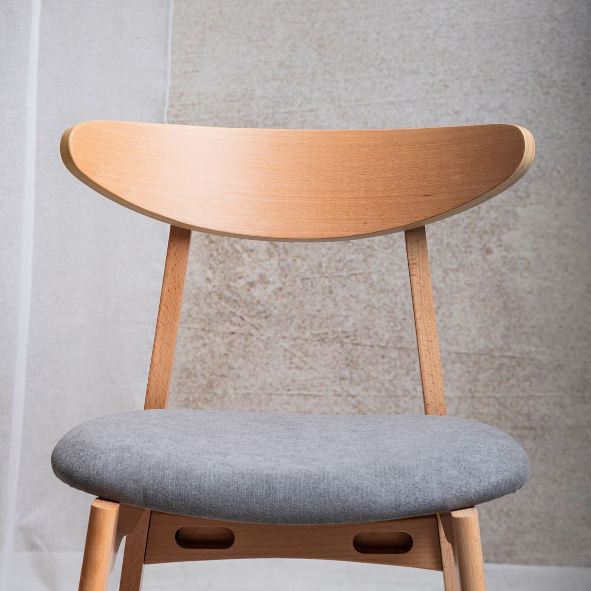 Materiāls Krēsls ir izgatavots no augstas kvalitātes dižskābarža koka, nodrošinot izturību un stabilitāti. Polsterētais pelēkais sēdeklis ir ne tikai estētiski pievilcīgs, bet arī ērts un viegli tīrāms, padarot to par ideālu izvēli ikdienas lietošanai. Papildinformācija Svars: 5,25 kg Augstums no zemes līdz sēdeklim: 45 cm