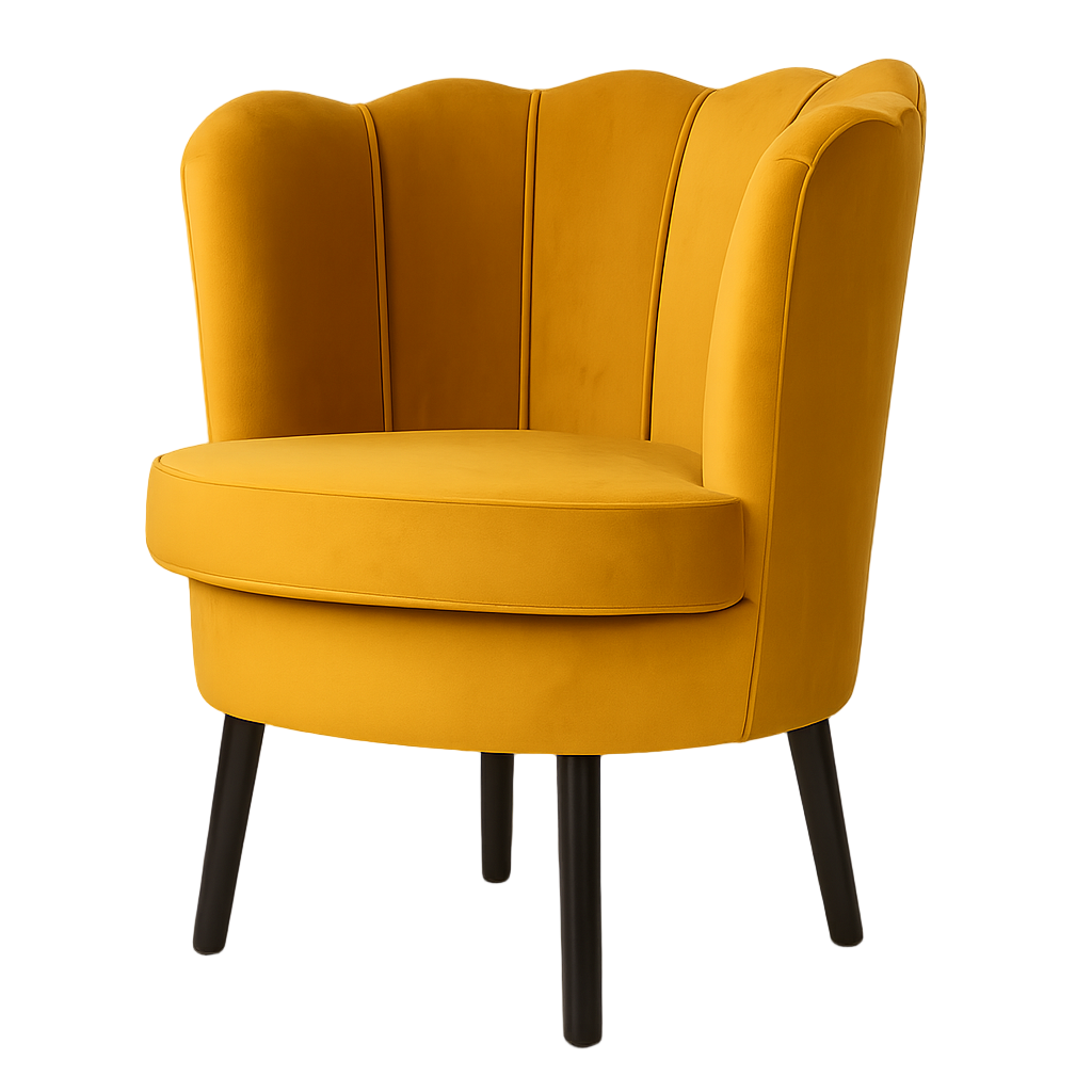 Konturētā atzveltne apņem lietotāju, nodrošinot komfortu un mājīgumu, savukārt slaidās kājas piešķir stabilitāti un modernu raksturu.