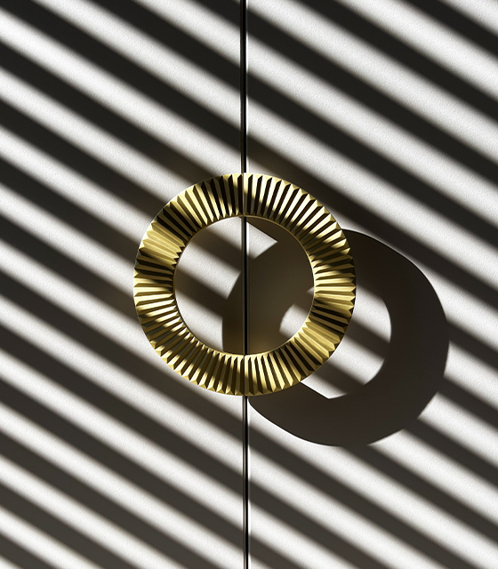 Smalkais, smalkais rievu raksts lieliski atbilst rievām uz milzīgajiem, dekoratīvajiem matēta zelta rokturiem.