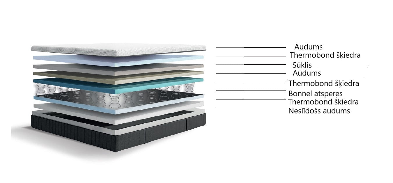 Trikotāžas audums stepēts ar Hyper Soft sūkli ļaus sasniegt maksimālu komfortu, un pilnībā ortopēdiskais  efekts nodrošinās jums teicamu miegu līdzsvarā ar Bonnel atsperu sistēmu, kas sadala spiedienu vienmērīgi pa visu matraci.
