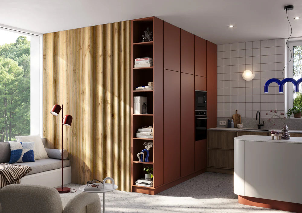 Bezšuvju apdare garantē vienmērīgu dekoratīvu efektu, savukārt trīspusējais finierējums uzsver to kvalitāti un izturību.