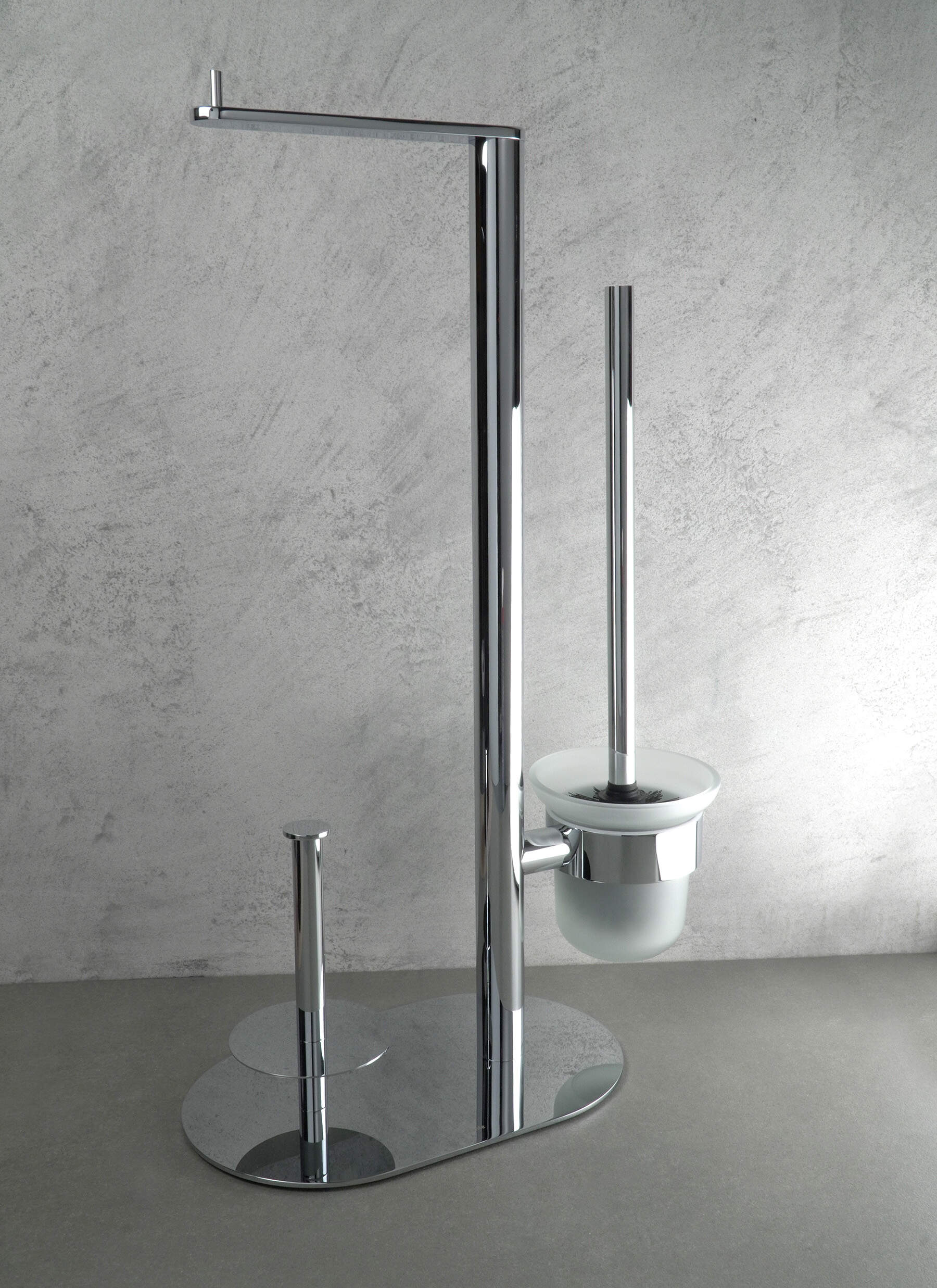 Papīra statīvs ir svarīgs tualetes vai vannas istabas aprīkojuma elements. Tas ir izgatavots no misiņa un nerūsējošā tērauda, kas nodrošina tā izturīgo un ilgstošo konstrukciju. Tā klasiskās līnijas un minimālisma raksturs padara to lieliski piemērotu modernam un minimālisma interjeram. Statīvā ir arī konteiners tualetes birstei. Apaļo piederumu kolekcijā ir plaša plauktu, sienas āķu, dušas grozu, papīra turētāju, kā arī zobu birstes trauka, kosmētikas spoguļa un ziepju trauka un ziepju dozatora izvēle. Visiem priekšmetiem ir universāls raksturs, tāpēc tie viegli iederēsies jebkurā interjerā. Apaļie aksesuāri ir pieejami divās krāsās, kas lieliski sader ar maisītāju kolekciju: spīdīgā hroma un elegantā melnā.