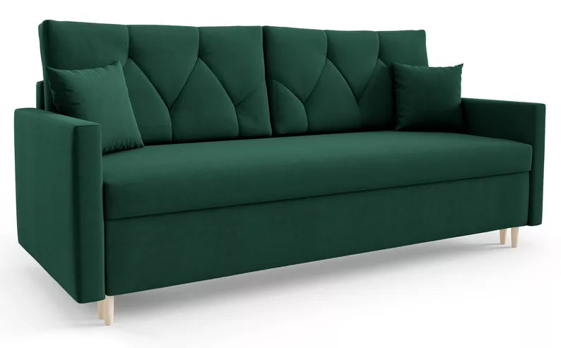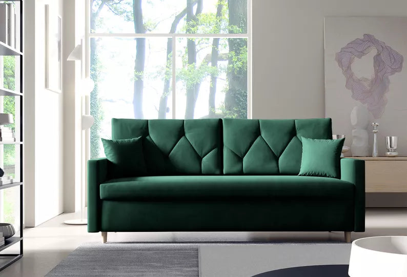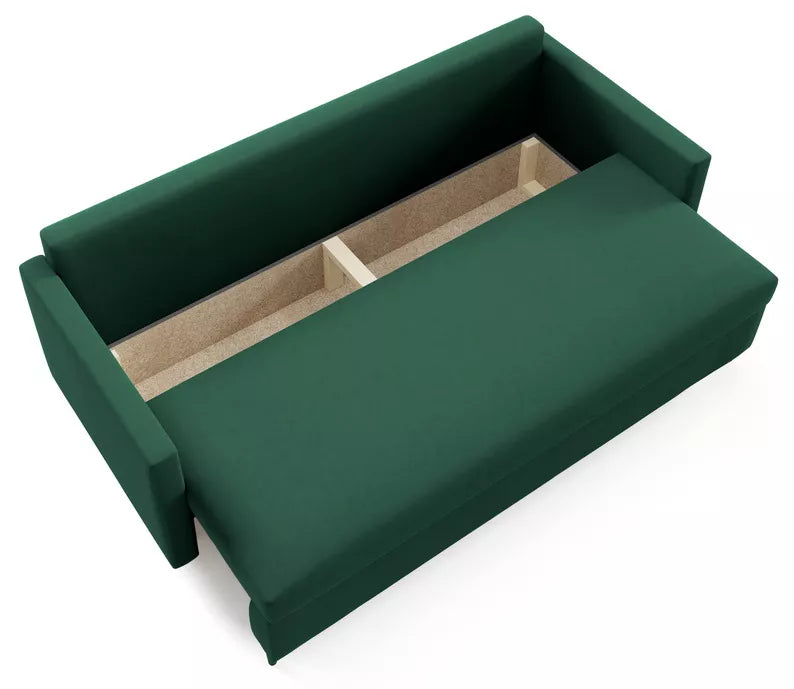 RAZO Dīvāns-gulta ar glabātuvii, zaļš samts