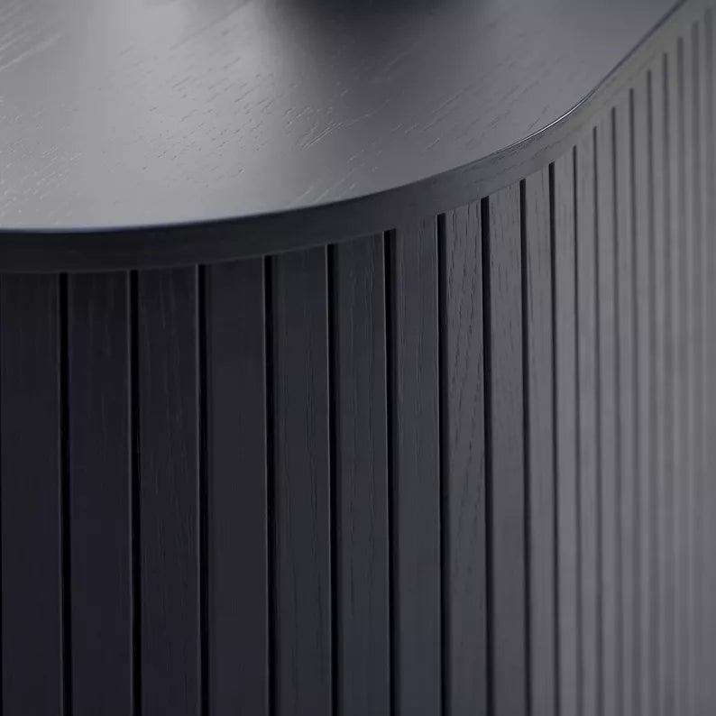 TIVELGA TV skapis ir recepte unikāli iekārtotam atpūtas stūrītim, kur skaistums satiekas ar funkcionalitāti. Gludā ovāla forma nodrošina pietiekami daudz vietas, lai ērti novietotu jūsu ģimenei visvairāk nepieciešamās elektroniskās ierīces, piemēram, spēļu konsoli vai Blu-ray atskaņotāju. Papildu dizaina priekšrocība ir plaši plaukti, kas paslēpti aiz sānu bīdāmām durvīm. Elementi efektīvi tiks galā ar multimediju izklaidei nepieciešamajiem piederumiem, uz visiem laikiem atbrīvojoties no jucekli un atvieglojot vajadzīgā filmu diska vai telefona lādētāja atrašanu. TIVELGA lieliski derēs arī kā zema kumode, ko var novietot pie sienas, piem., priekšnamā. Mēbeļu atšķirīgā iezīme ir fasādes, kas dekorētas ar skaistām lamelēm, kas lieliski atbilst aktuālajām tendencēm.