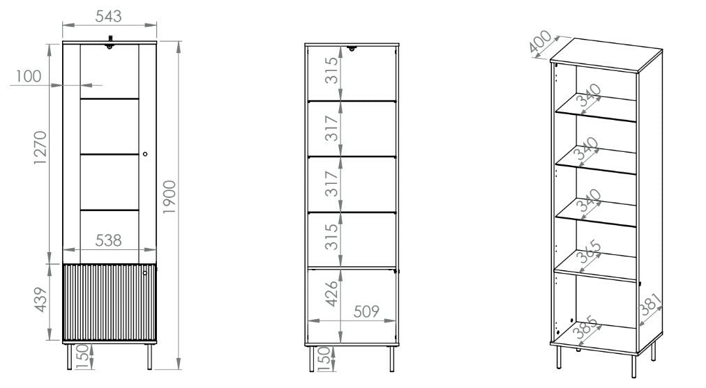 Vitrīnas skapis Galeto 190/55/40 cm bēšs