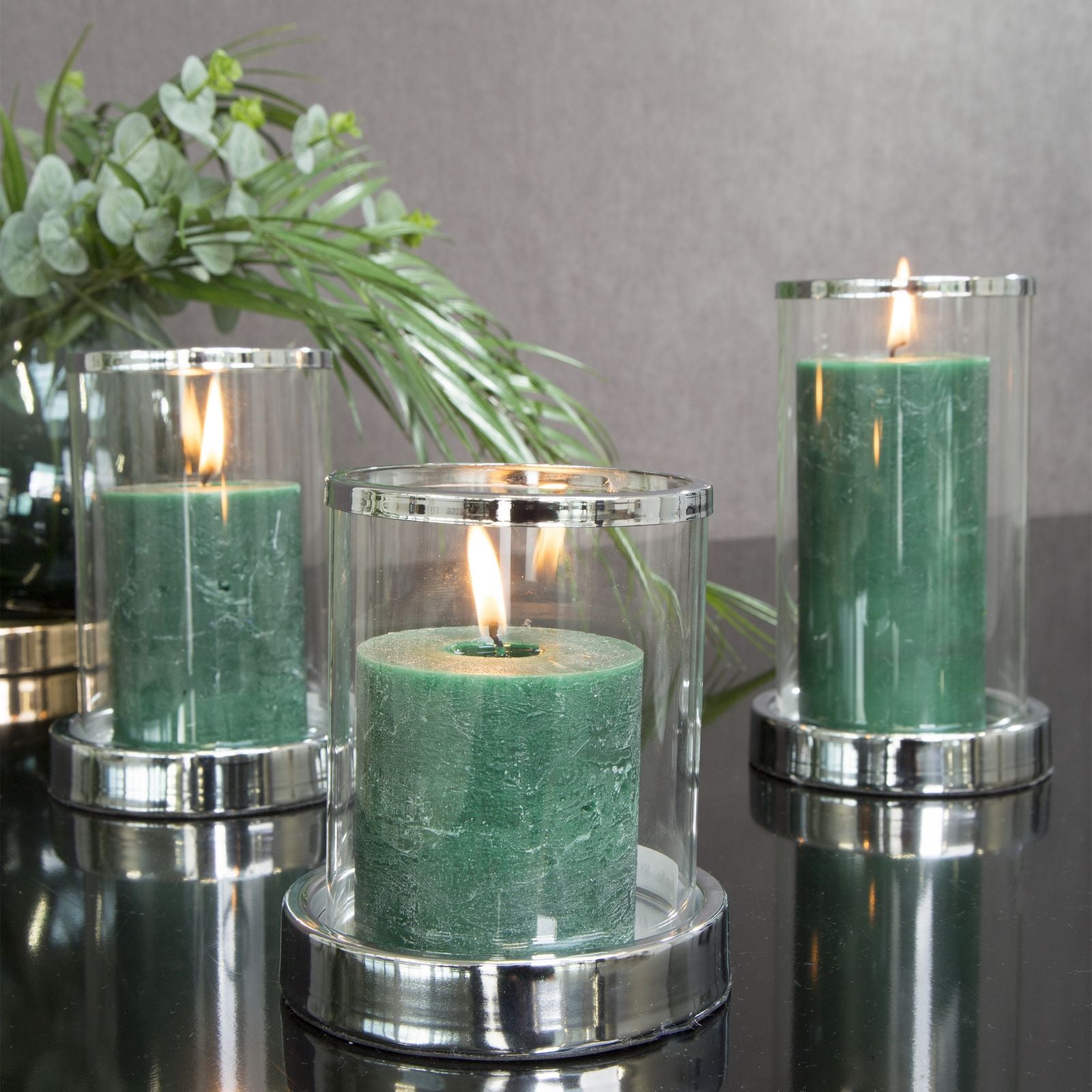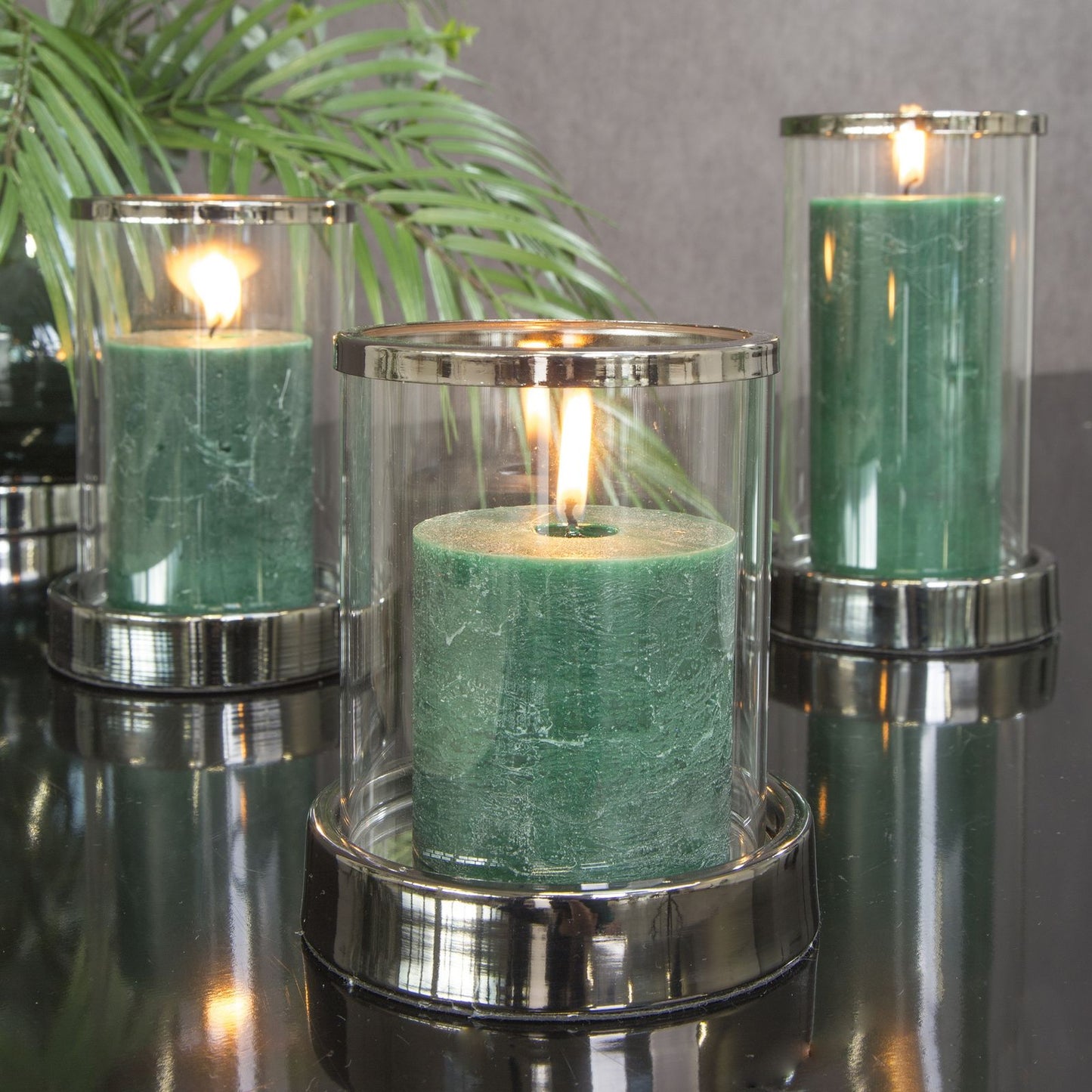 Dekoratīvs metāla svečturis ar stikla difuzoru Platums: (fi) 12 cm, Garums: 13 cm, Krāsa: sudraba, Sastāvs: metāls+stikls