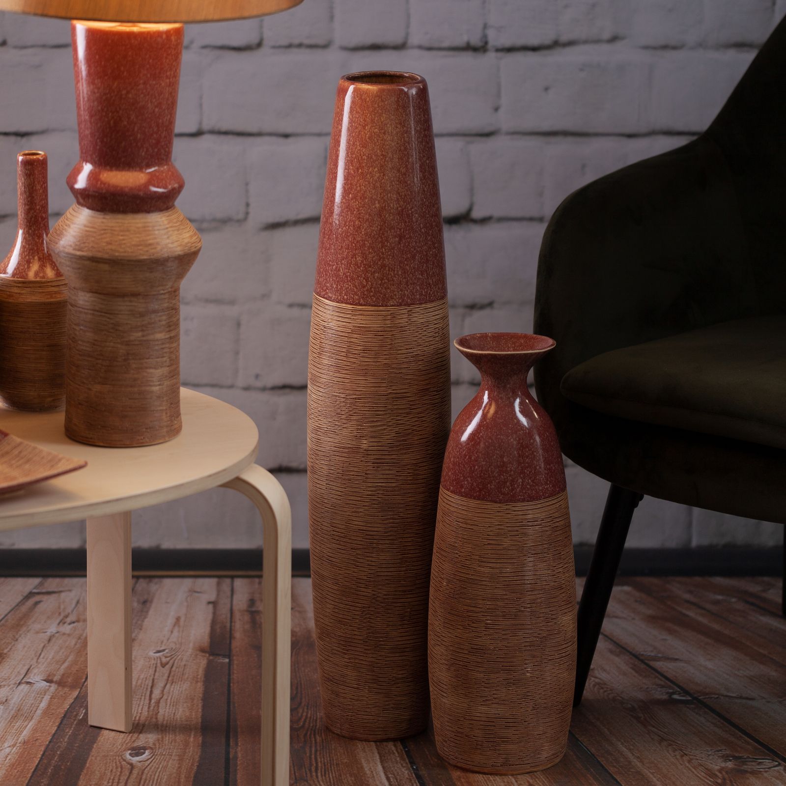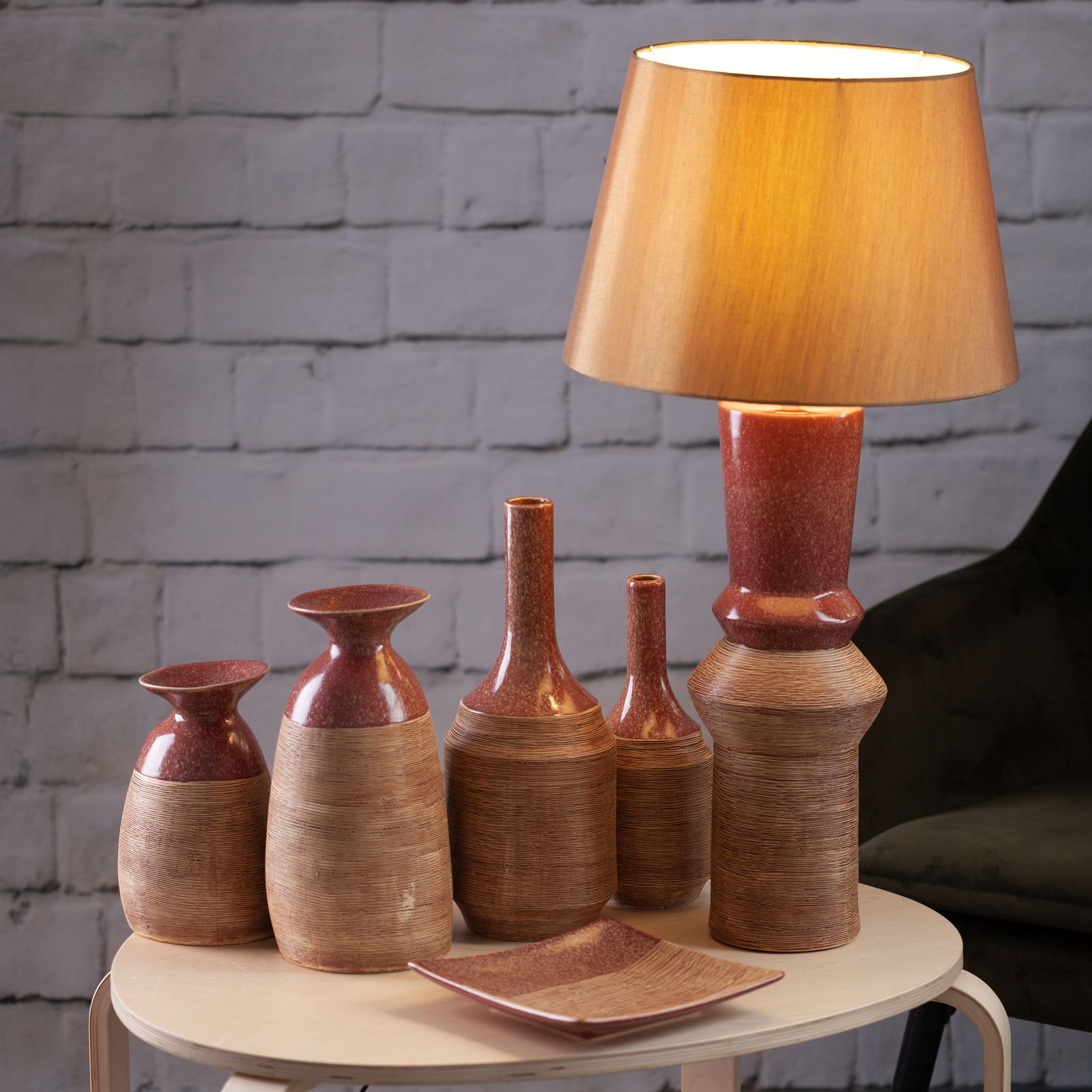 Dekoratīvās lampas platums: (fi) 35 cm, garums: 75 cm, krāsa: sarkana, sastāvs: keramikas māls;poliesteris , barošanas avots: CE 220-240V 50HZ , kvēlspuldze: 1 X E27 MAX 60W , enerģijas klase: A-G