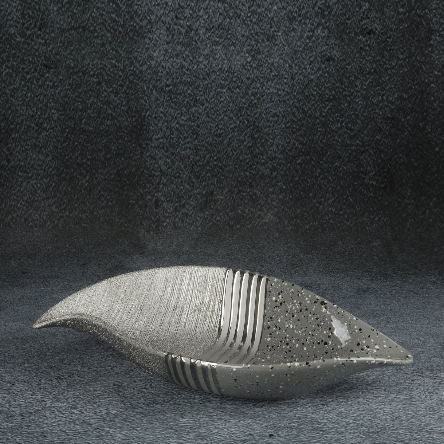 Dekoratīvais šķīvja platums: 27 cm, garums: 12 cm, krāsa: sudraba, sastāvs: keramiskais māls