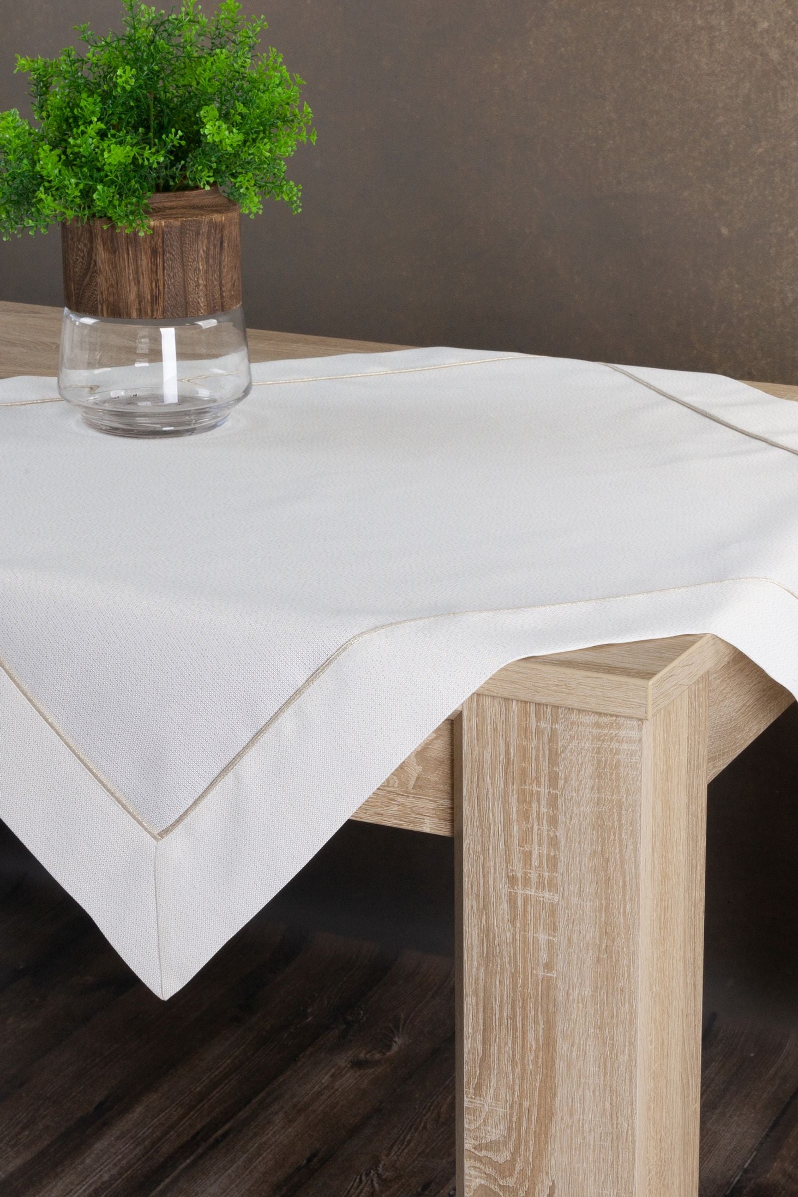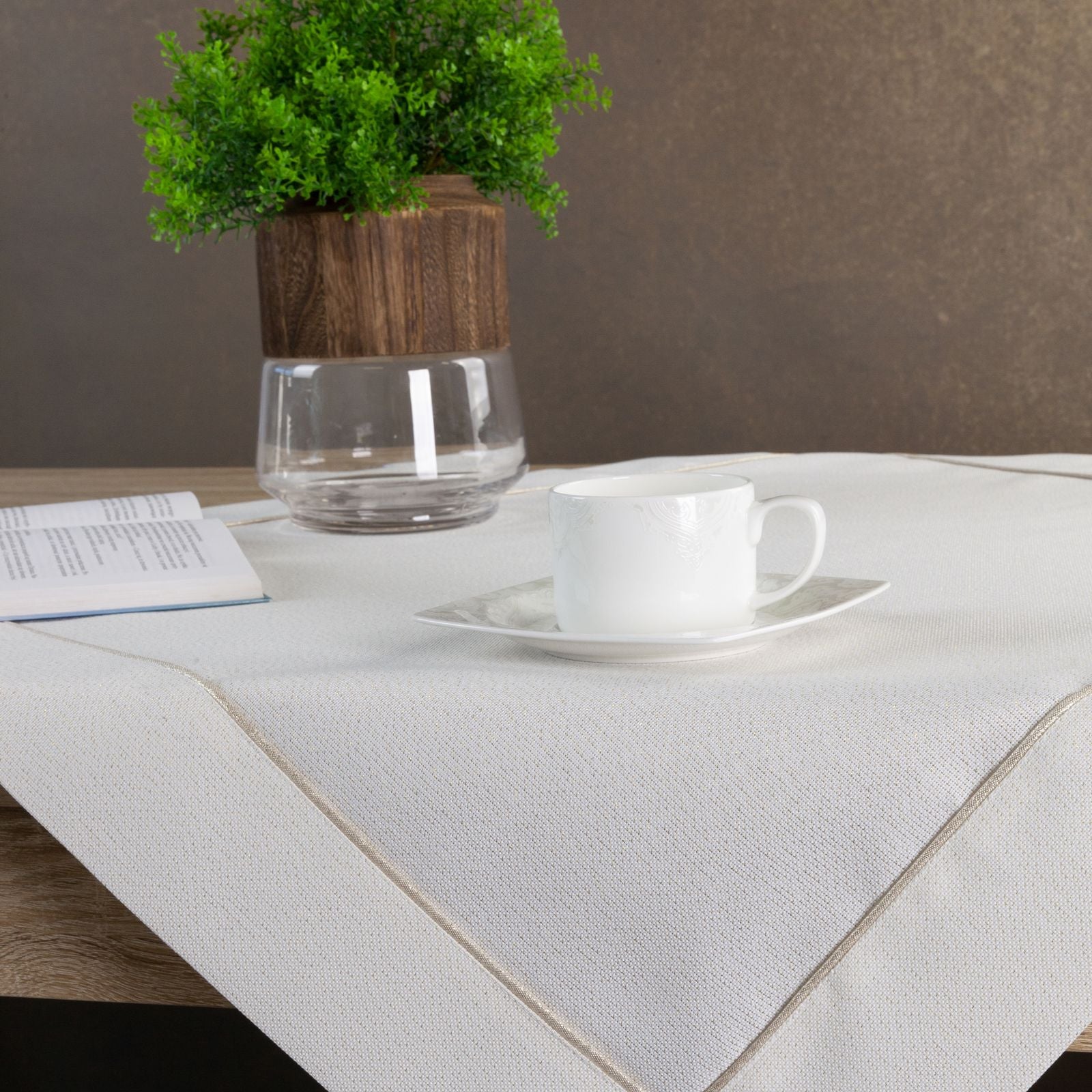 Salvetes rotātas ar zeltītām līnijām, iepakotas elegantā kastītē platums: 85 cm, garums: 85 cm, krāsa: krēma, svars: 250 GSM, sastāvs: Sastāvs: 100% poliesteris