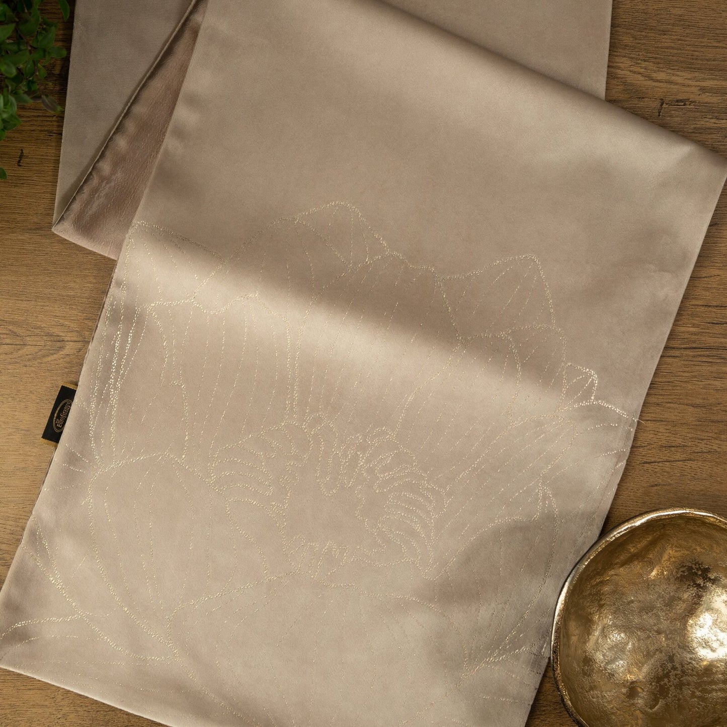 Samta siksna ar šampanieša apdruku platums: 35 cm, garums: 140 cm, krāsa: bēša, svars: 250 GSM, sastāvs: Sastāvs: 100% poliesteris.