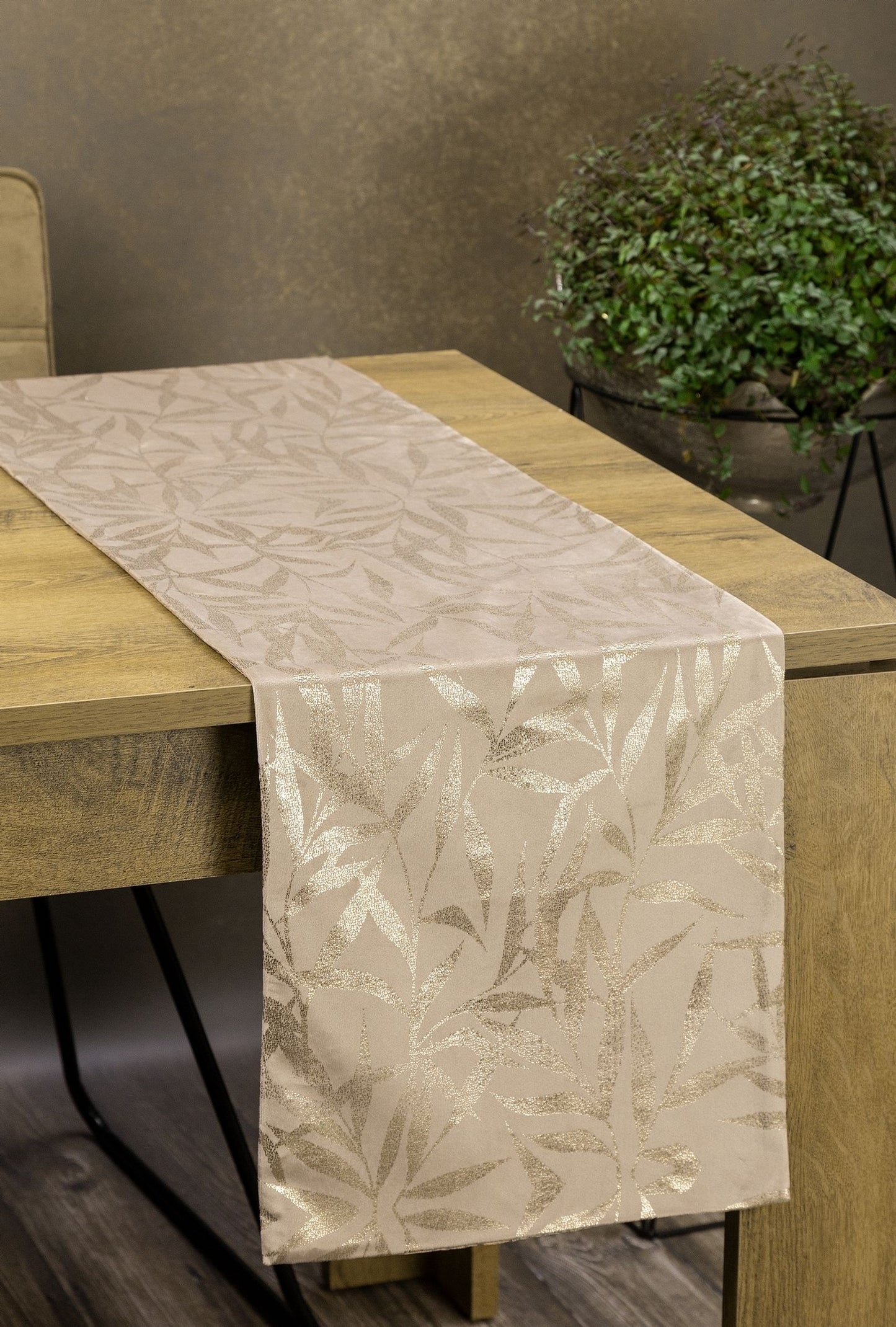 Samta siksna ar šampanieša apdruku platums: 35 cm, garums: 140 cm, krāsa: bēša, svars: 250 GSM, sastāvs: Sastāvs: 100% poliesteris.