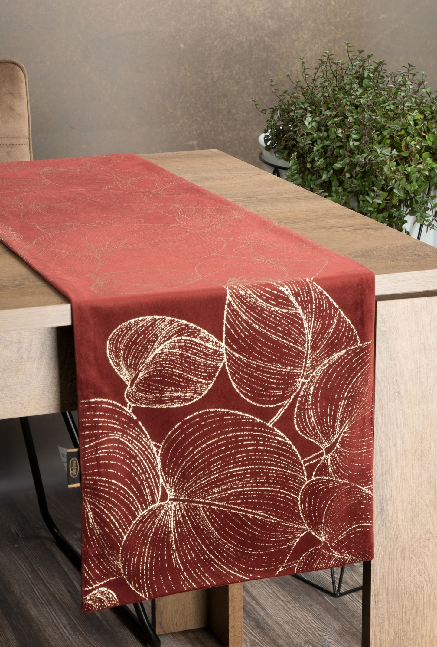 Samta siksna ar šampanieša apdruku platums: 35 cm, garums: 140 cm, krāsa: ķieģeļu, svars: 250 GSM, sastāvs: Sastāvs: 100% poliesteris.