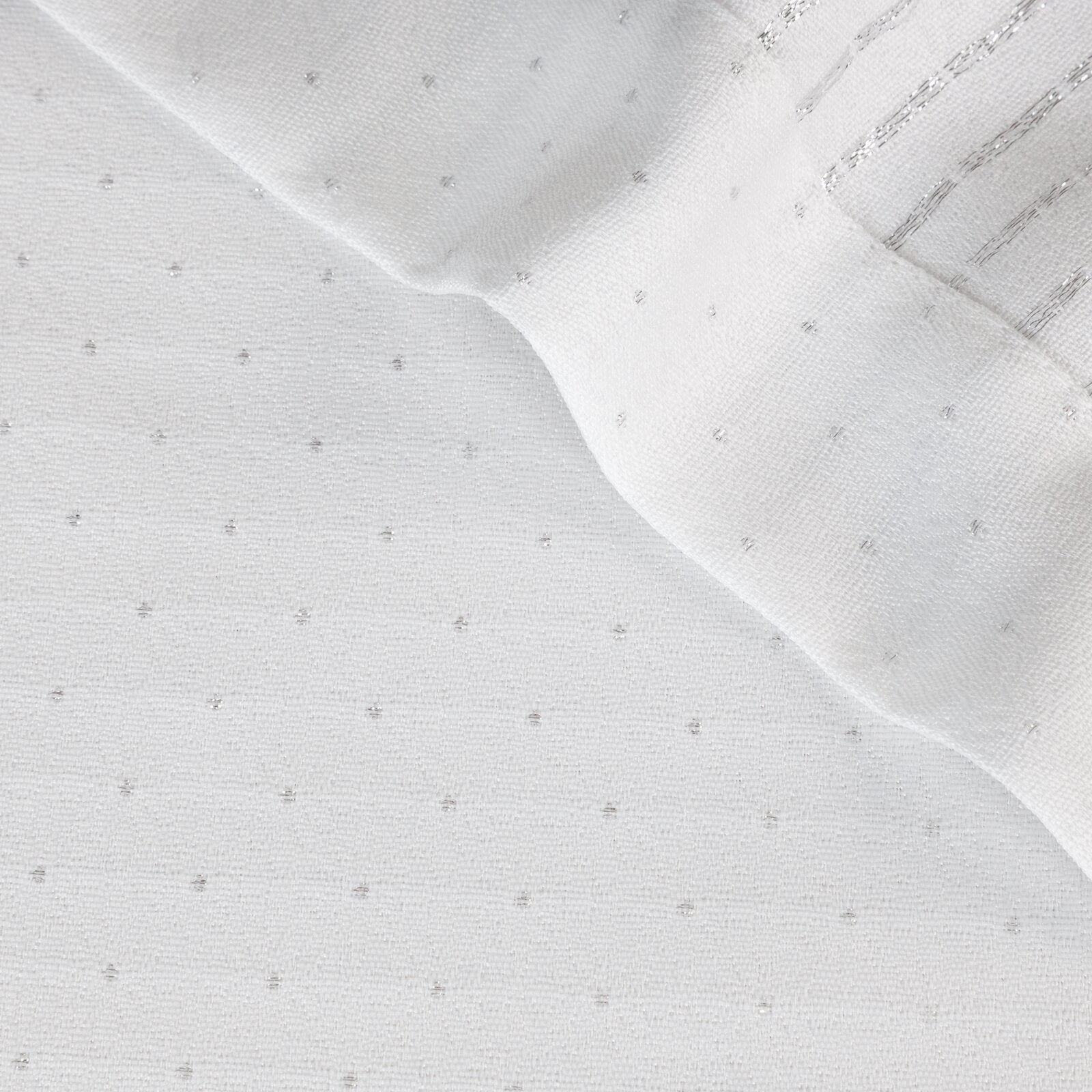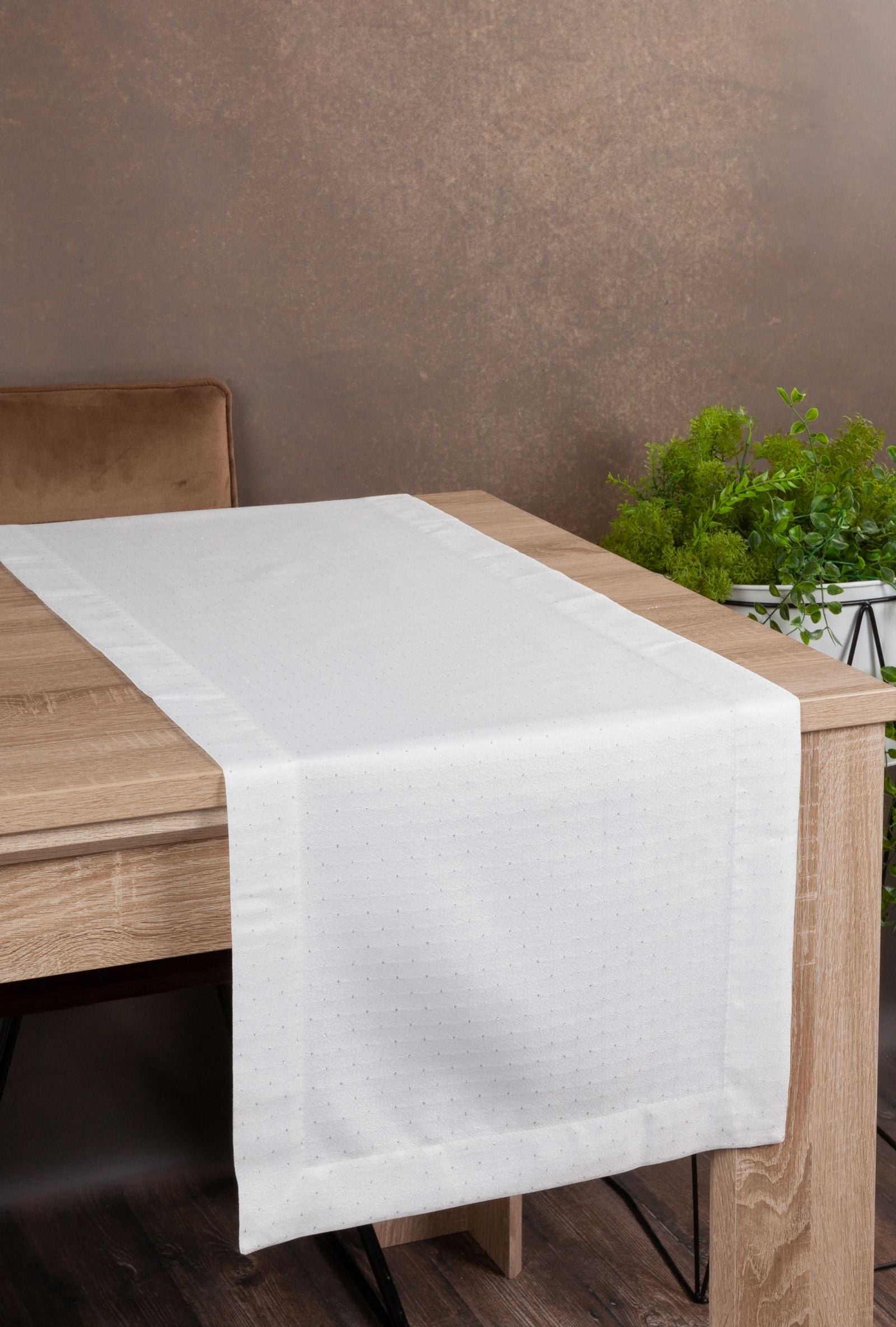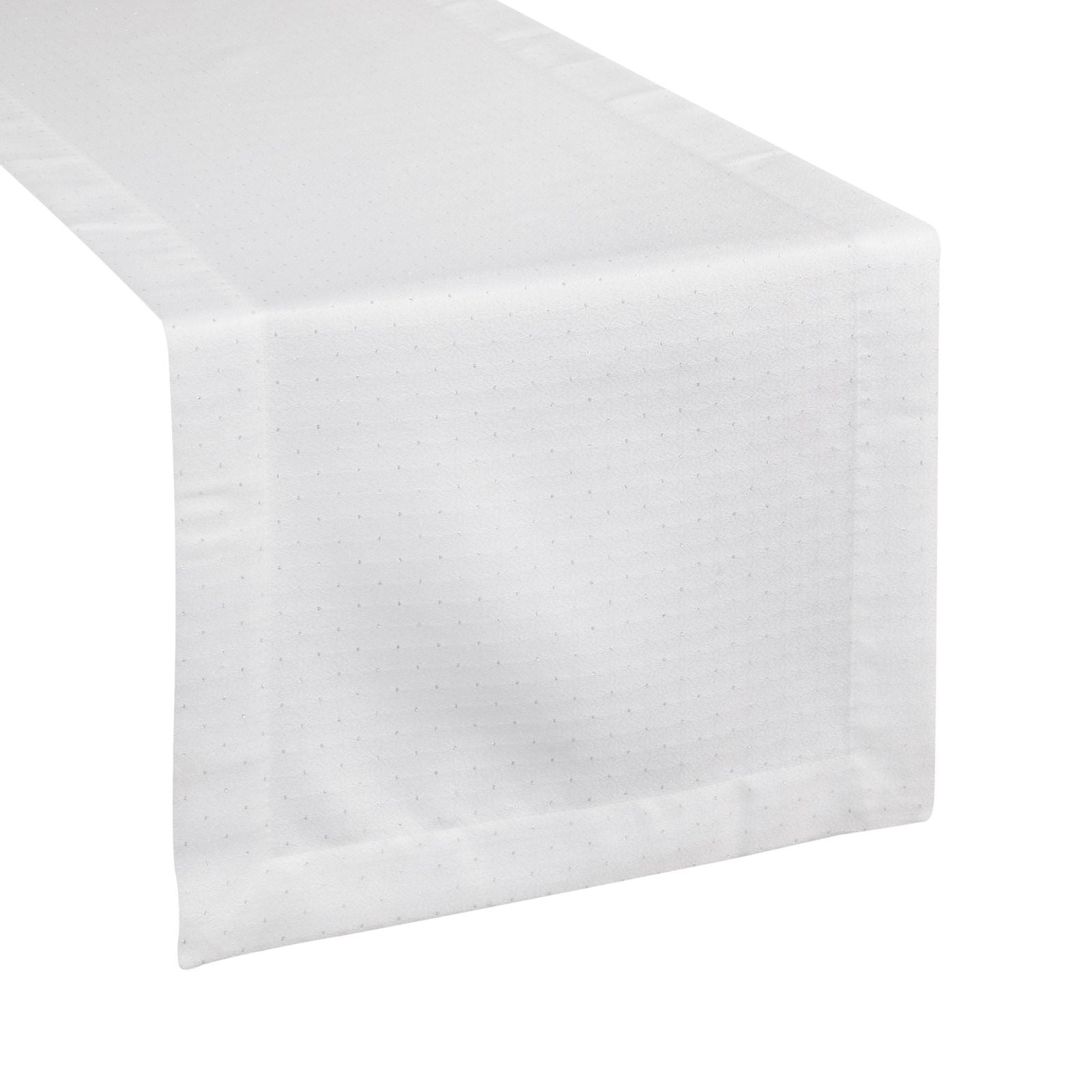 Skrejceļš ar sudraba pavedienu un caurumu platums: 40 cm, garums: 180 CM cm, krāsa: balta, svars: 160 GSM, sastāvs: Sastāvs: 100% poliesteris.