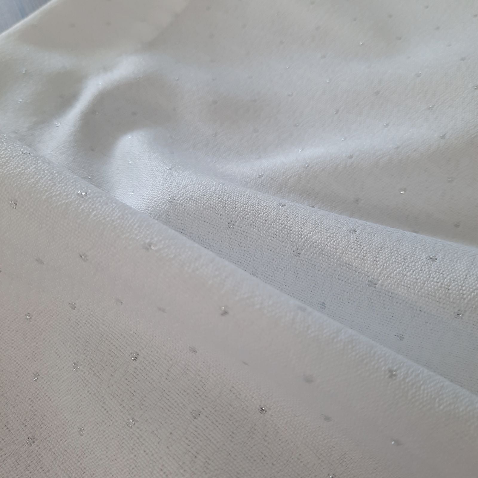 Ar sudraba mirdzošiem diegiem rotāts skrējējs platums: 40 cm, garums: 200 CM cm, krāsa: balta, svars: 160 GSM, sastāvs: Sastāvs: 100% poliesteris.