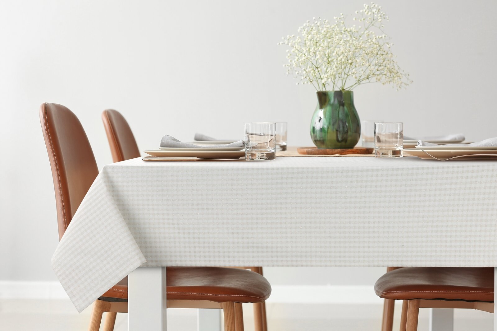 Spīdīgs galdauts ar Ziemassvētku motīvu platums: 85 cm, garums: 85 cm, krāsa: šampanieša, sastāvs: Sastāvs: 65% poliestera, 27% kokvilnas, 8% metālisku diegu.