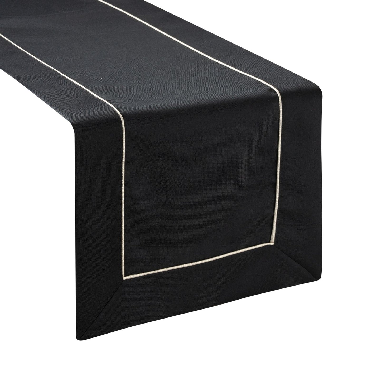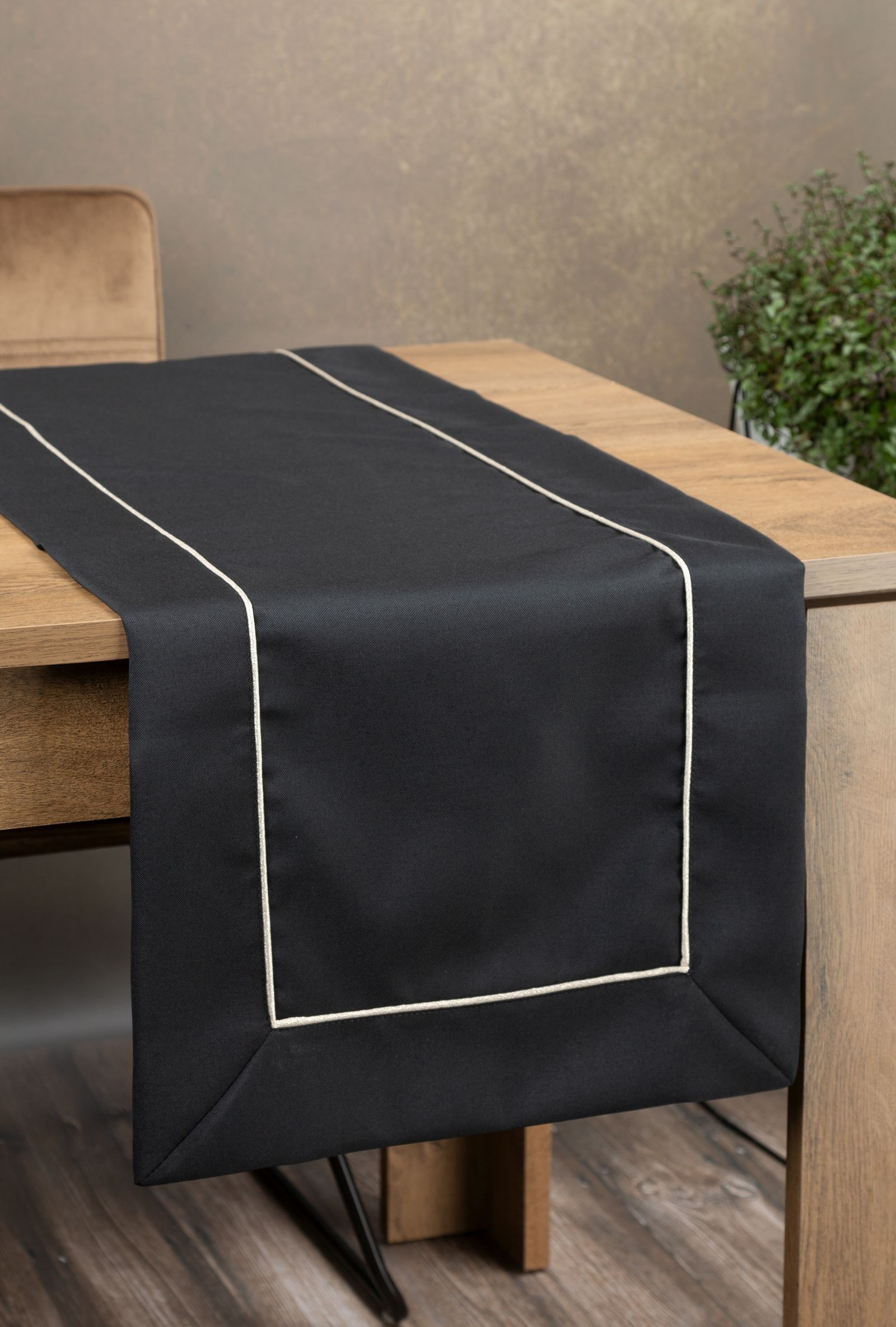 Skrejceļš ar smalku zelta apdari, iepakots elegantā kastē platums: 40 cm, garums: 180 cm, krāsa: melna, svars: 190 GSM, sastāvs: Sastāvs: 100% poliesteris.