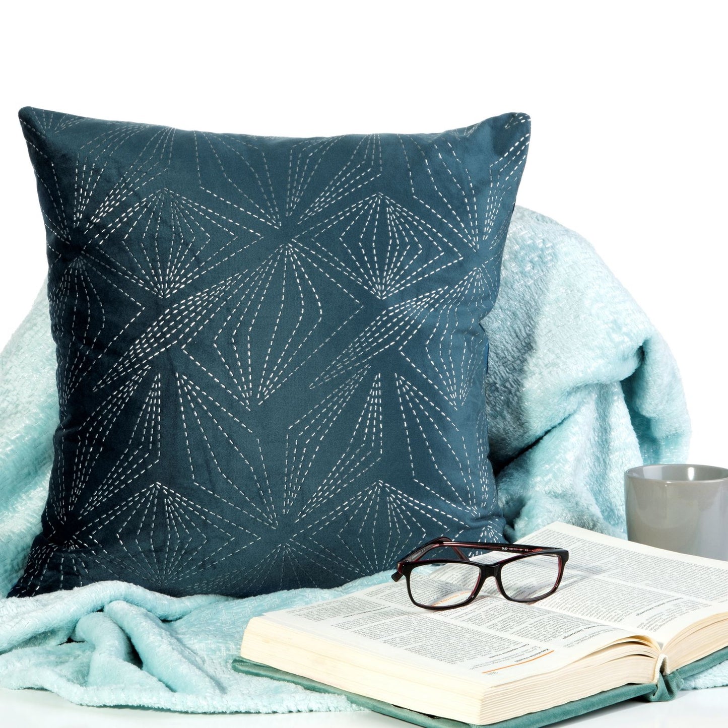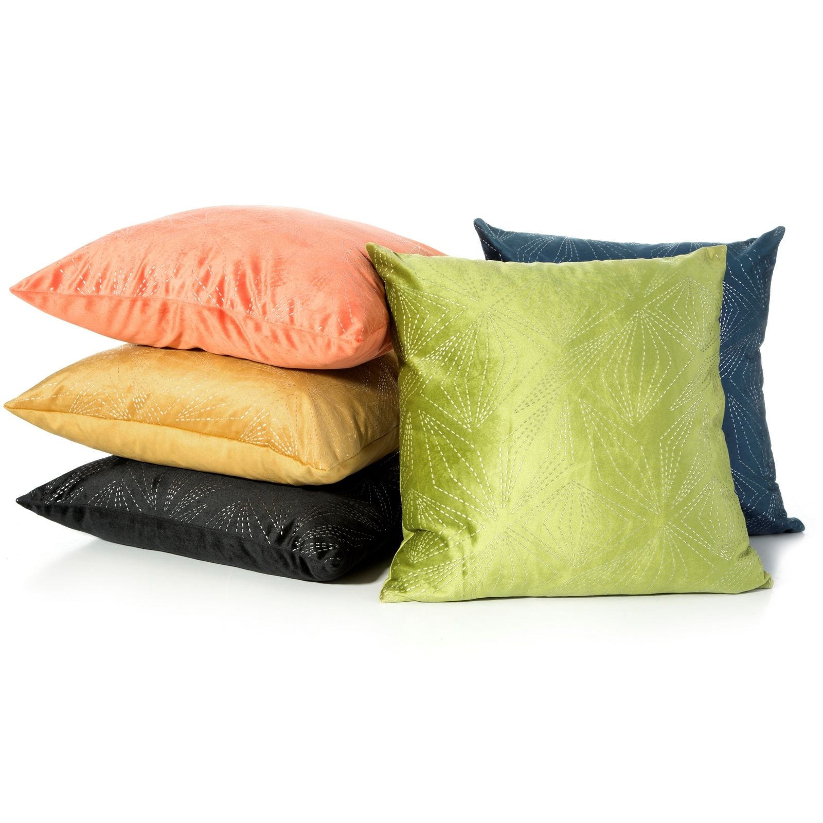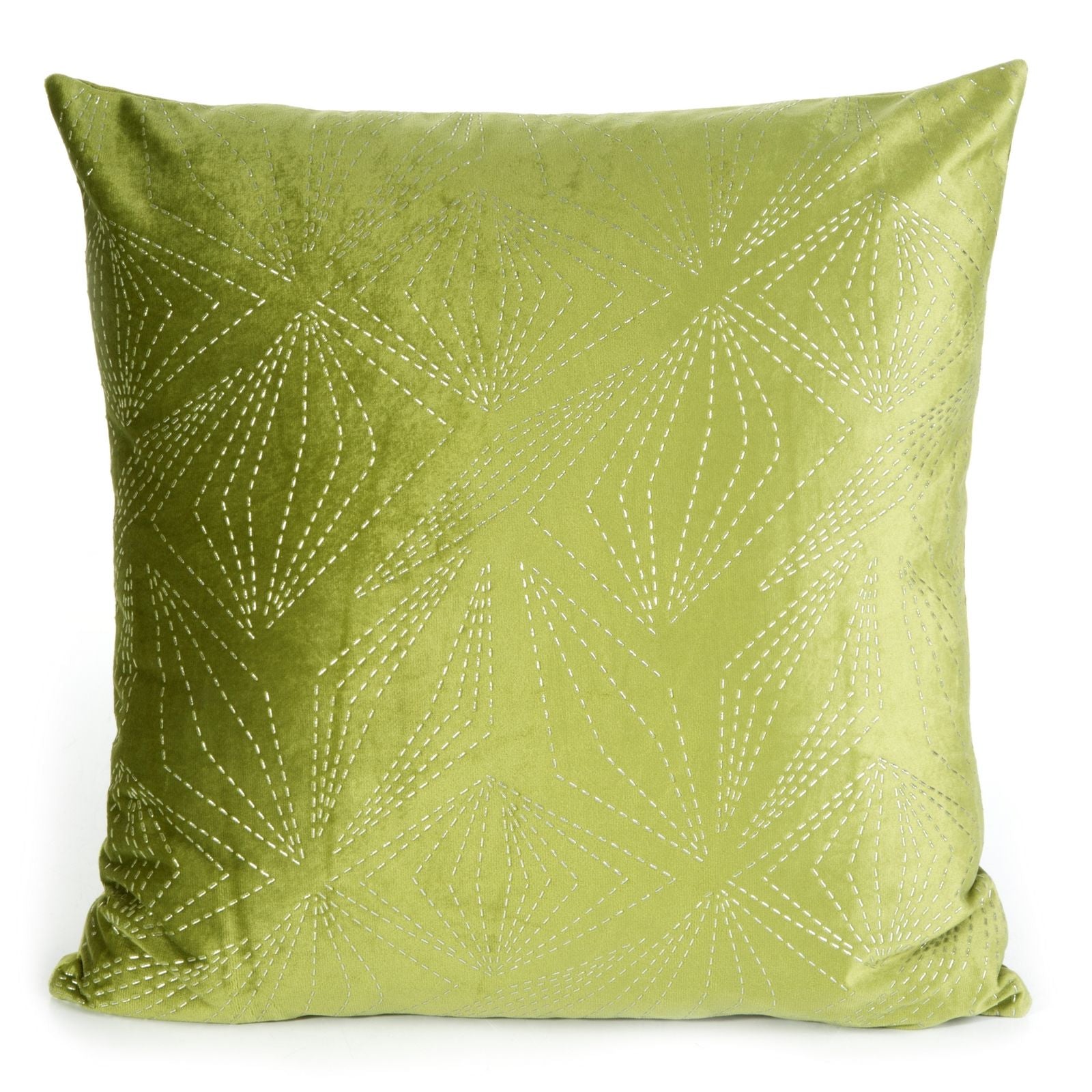 Skaists dekoratīvs spilvendrānas pārvalks no mīksta, pusmatēta samta, ko rotā spīdīgs ģeometriska raksta apdruka. Rāvējslēdzēja aizdares rāvējslēdzēja platums: 45 cm, garums: 45 cm, krāsa: olīvu, svars: 210 GSM, sastāvs: Sastāvs: 100% poliesteris.