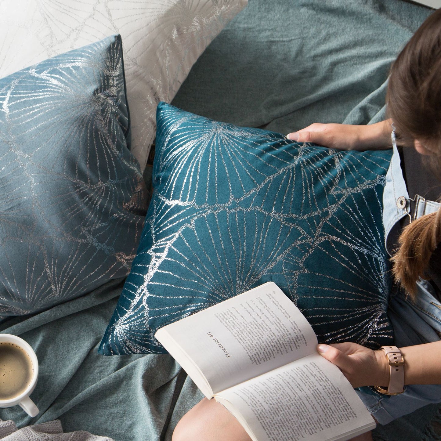 Apdrukāta samta spilvendrānas platums: 45 cm, garums: 45 cm, krāsa: tumši zila, svars: 250 GSM, sastāvs: Sastāvs: 100% poliesteris