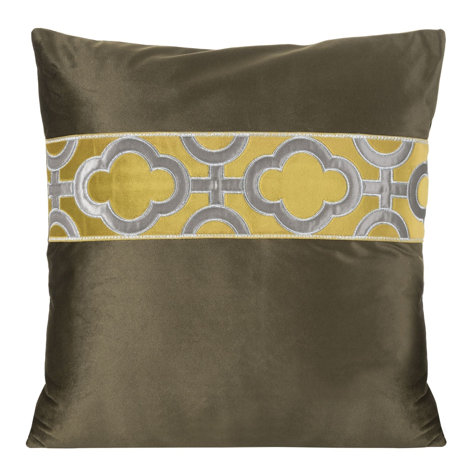 Samta spilvendrāna ar iešūtu aplikāciju platums: 45 cm, garums: 45 cm, krāsa: brūna, svars: 220 GSM, sastāvs: Sastāvs: 100% poliesteris