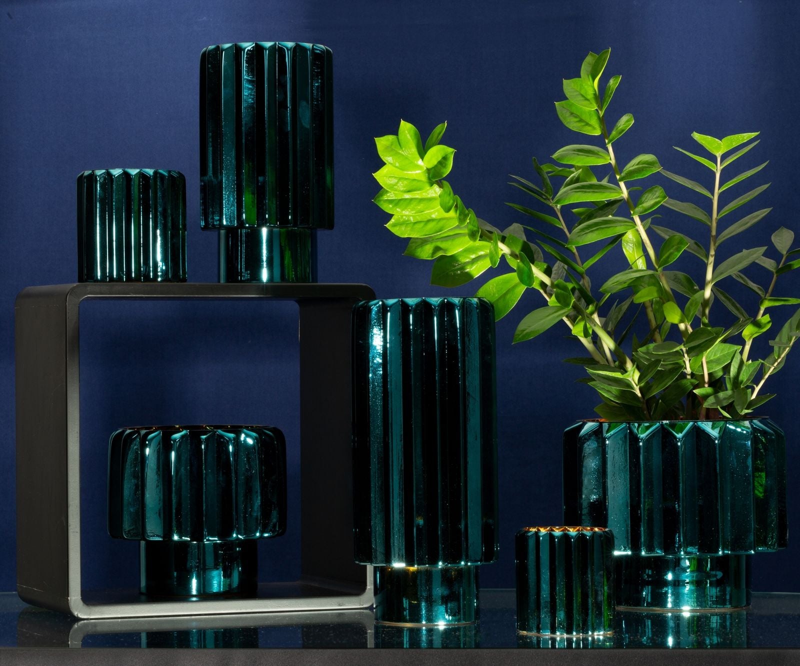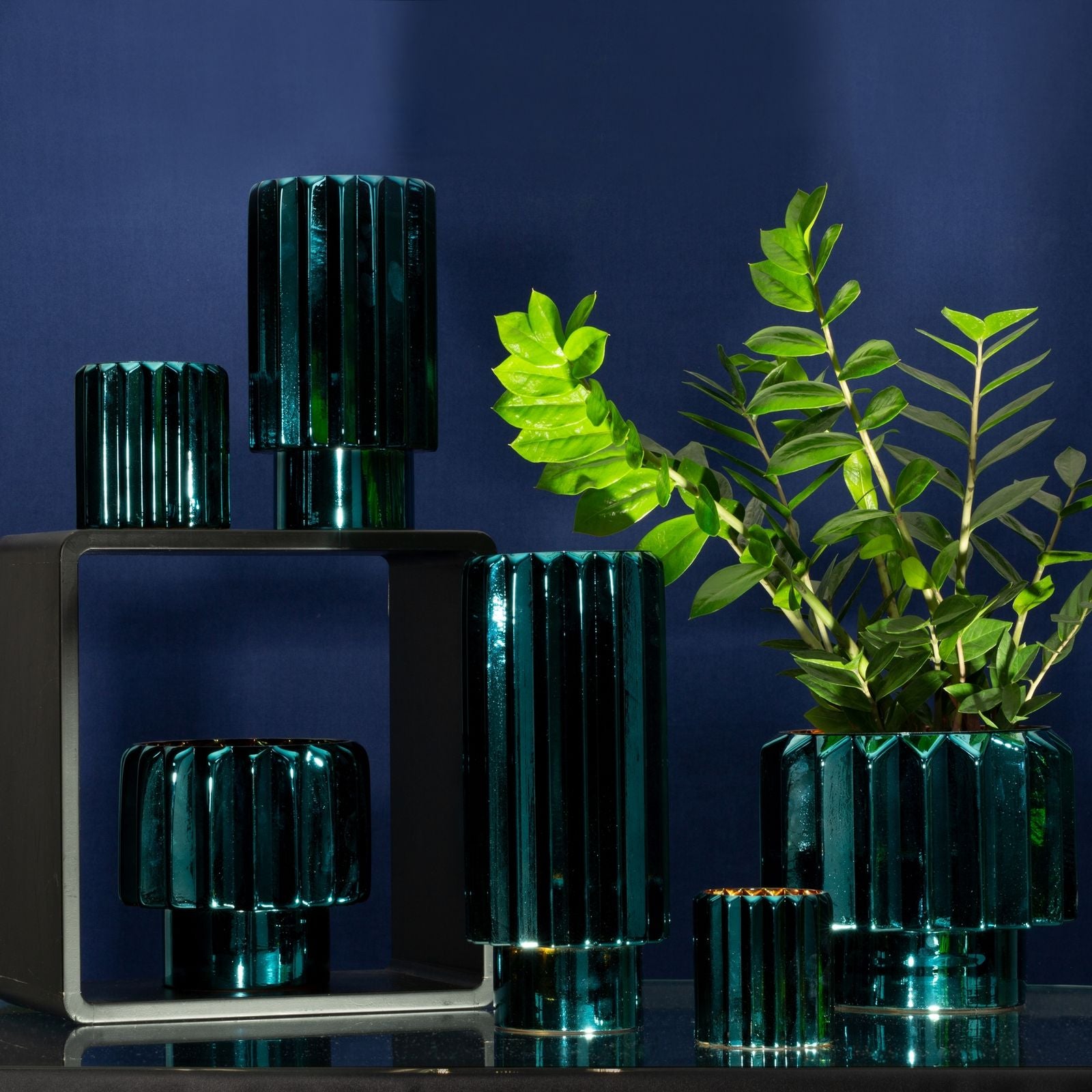 dekoratīvais svečturis platums: (fi) 12 cm, garums: 12 cm, krāsa: tirkīza, sastāvs: Sastāvs: 100% stikls