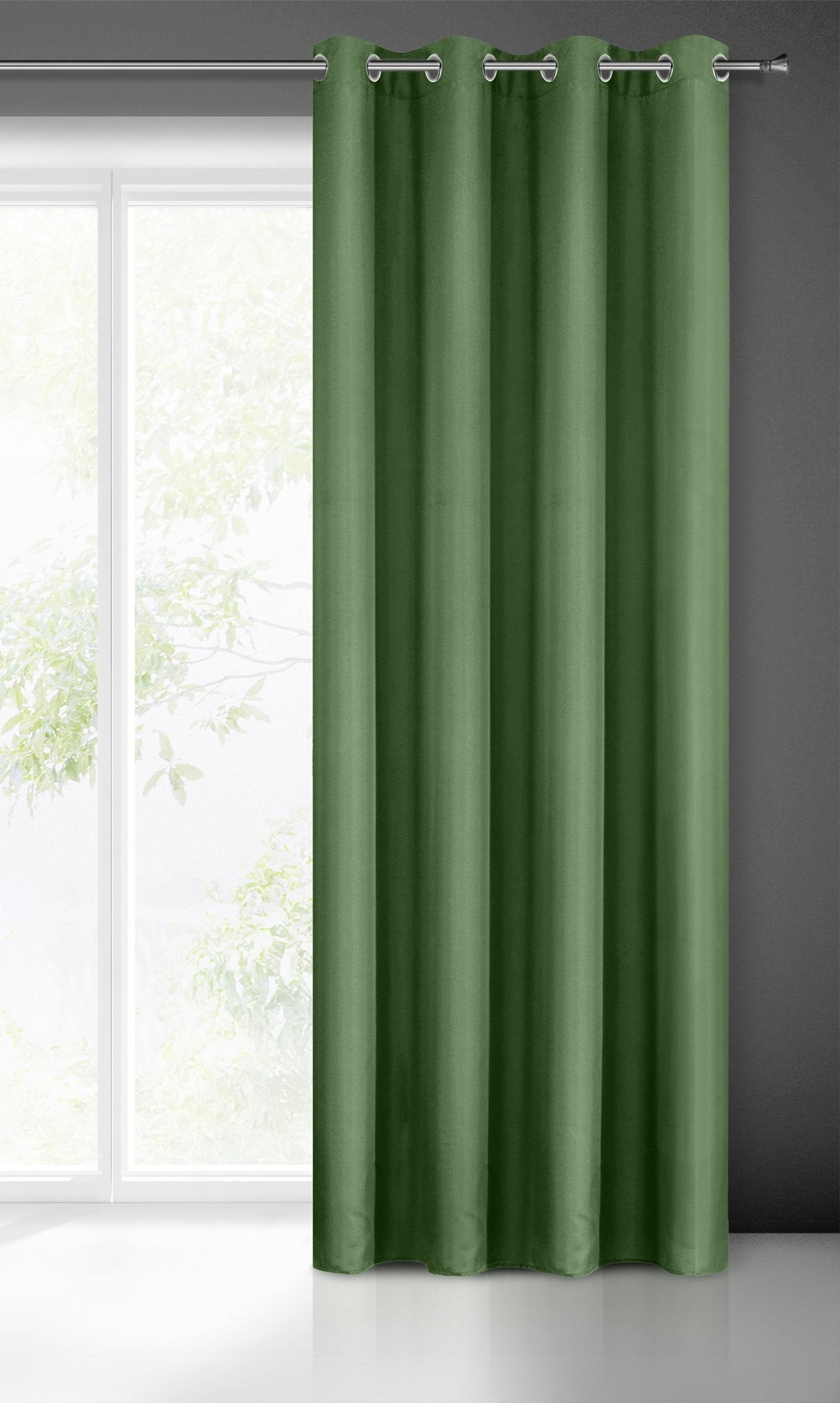 Mīksts aizkars ar vidēju tumšuma pakāpi. Tas priecē ar savu skaisto krāsu un minimālisma raksturu. Universāls logu rotājums. platums: 140 cm, garums: 250 cm, krāsa: zaļa, svars: 140 GSM, sastāvs: Sastāvs: 100% poliesteris.