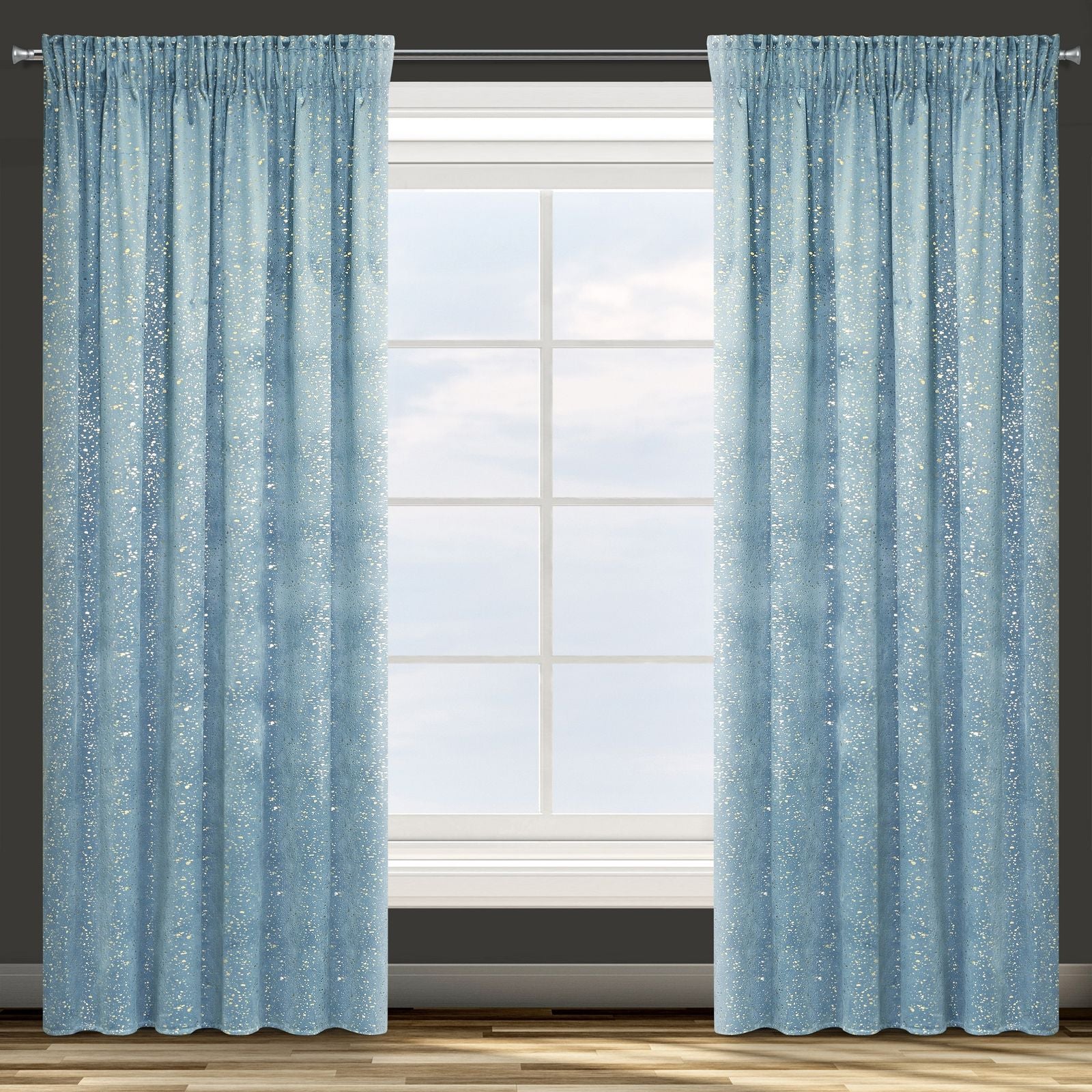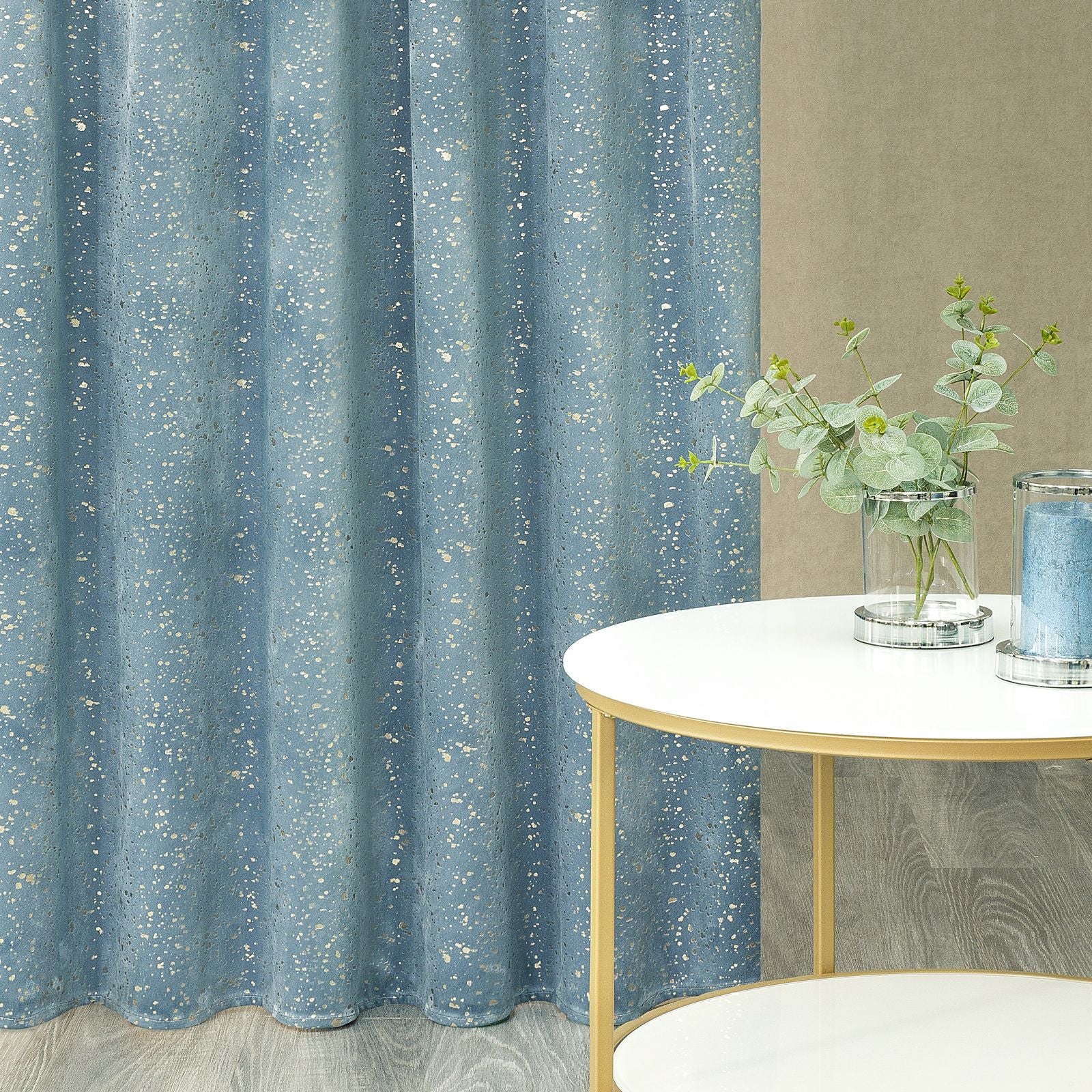Samta aizkars ar zelta apdruku platums: 140 cm, garums: 270 cm, krāsa: zila, svars: 200 GSM, sastāvs: Sastāvs: 100% poliesteris