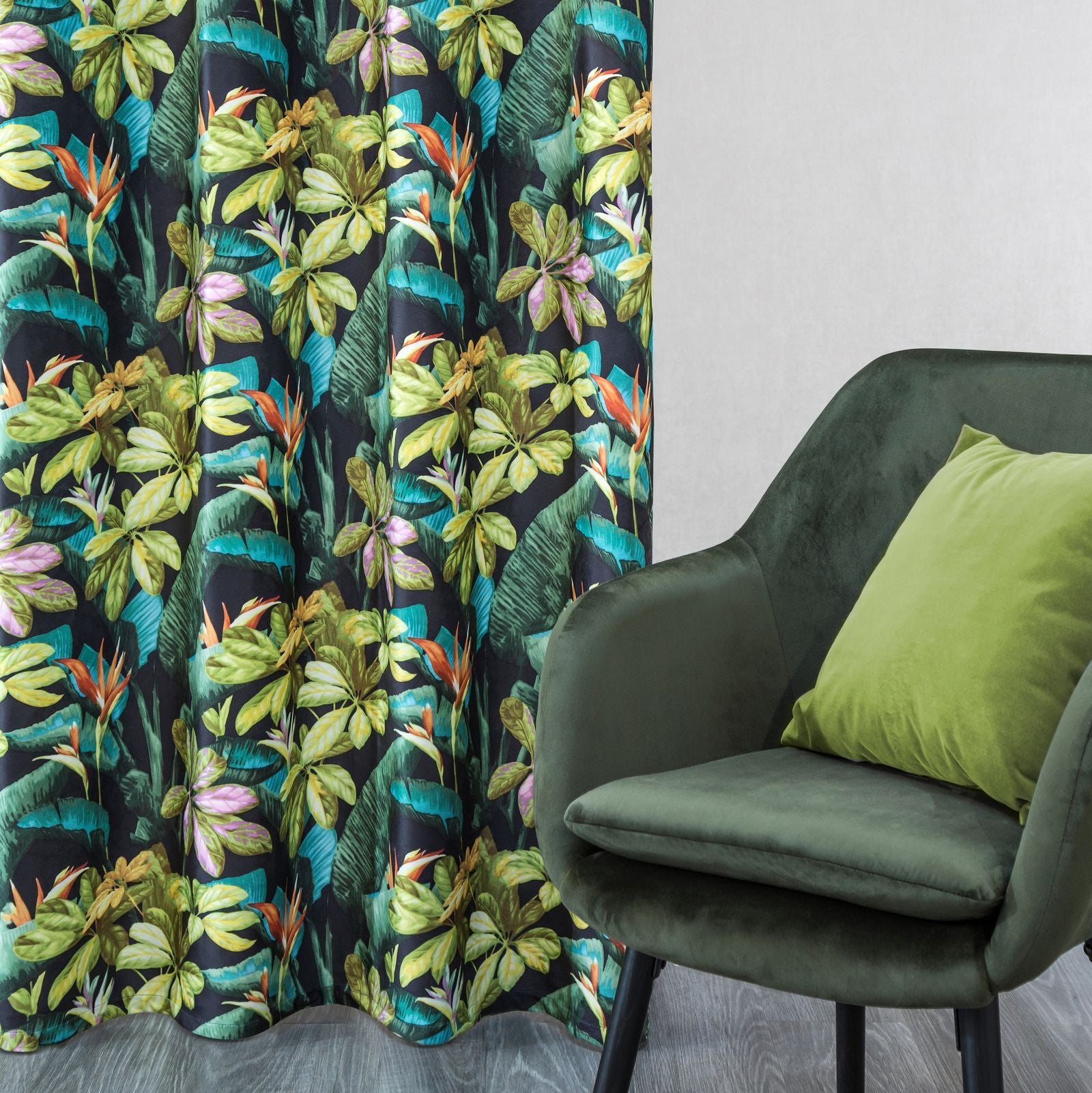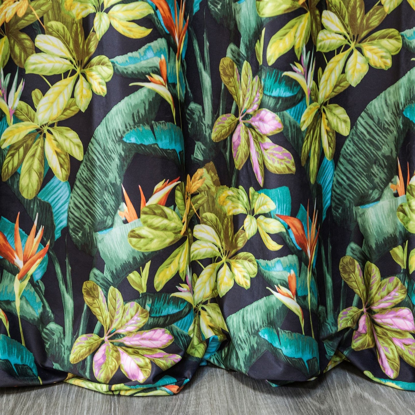 Apdrukāts samta aizkars platums: 140 cm, garums: 250 cm, krāsa: melna, svars: 200 GSM, sastāvs: Sastāvs: 100% poliesteris