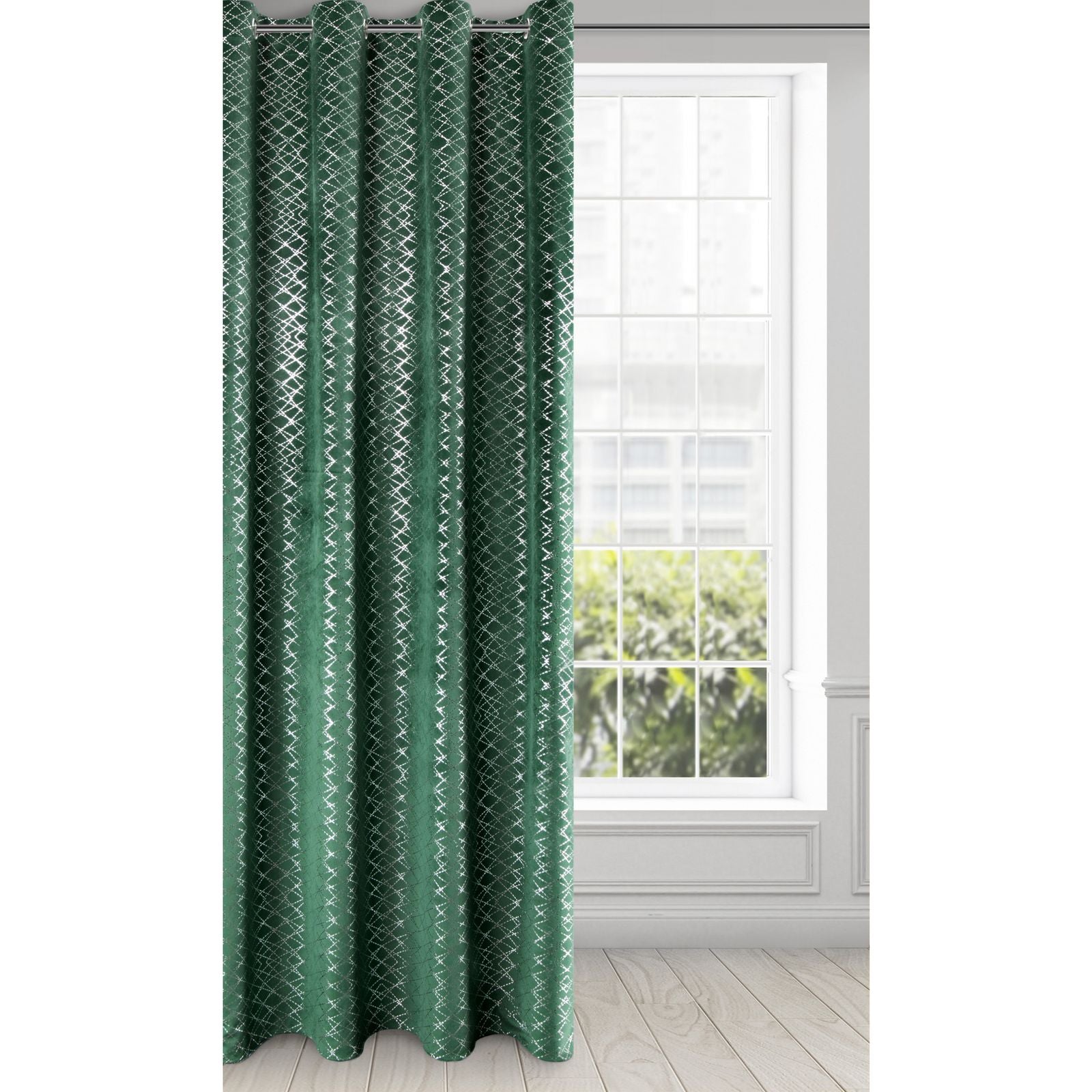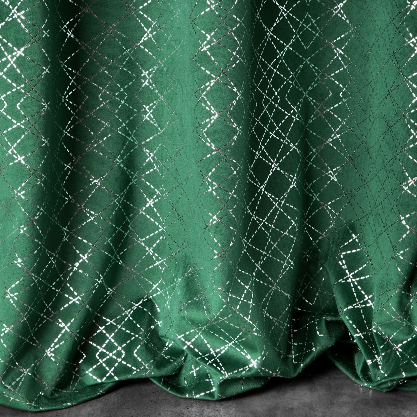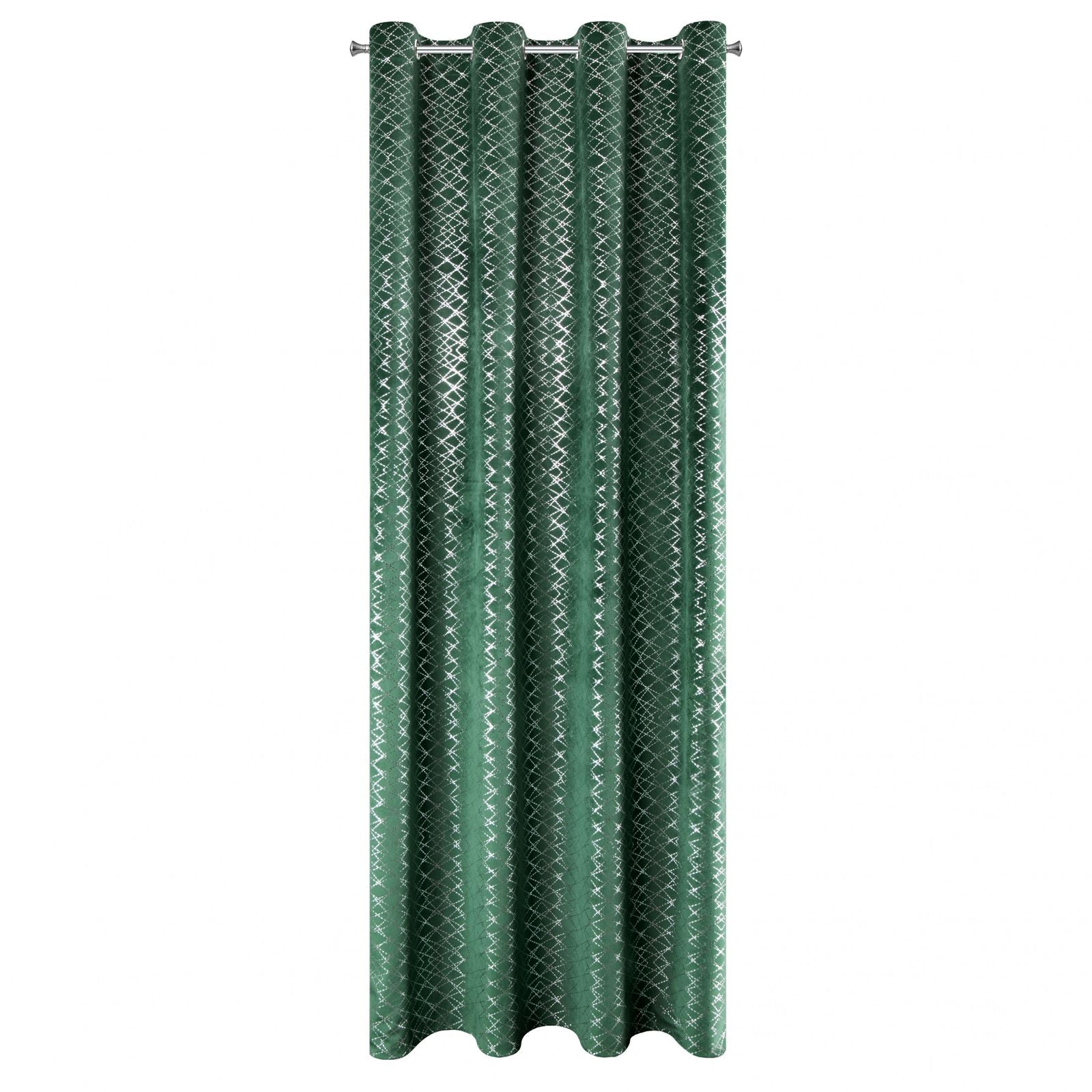 Samta aizkars ar sudraba apdruku platums: 140 cm, garums: 250 cm, krāsa: zaļa, svars: 200 GSM, sastāvs: Sastāvs: 100% poliesteris