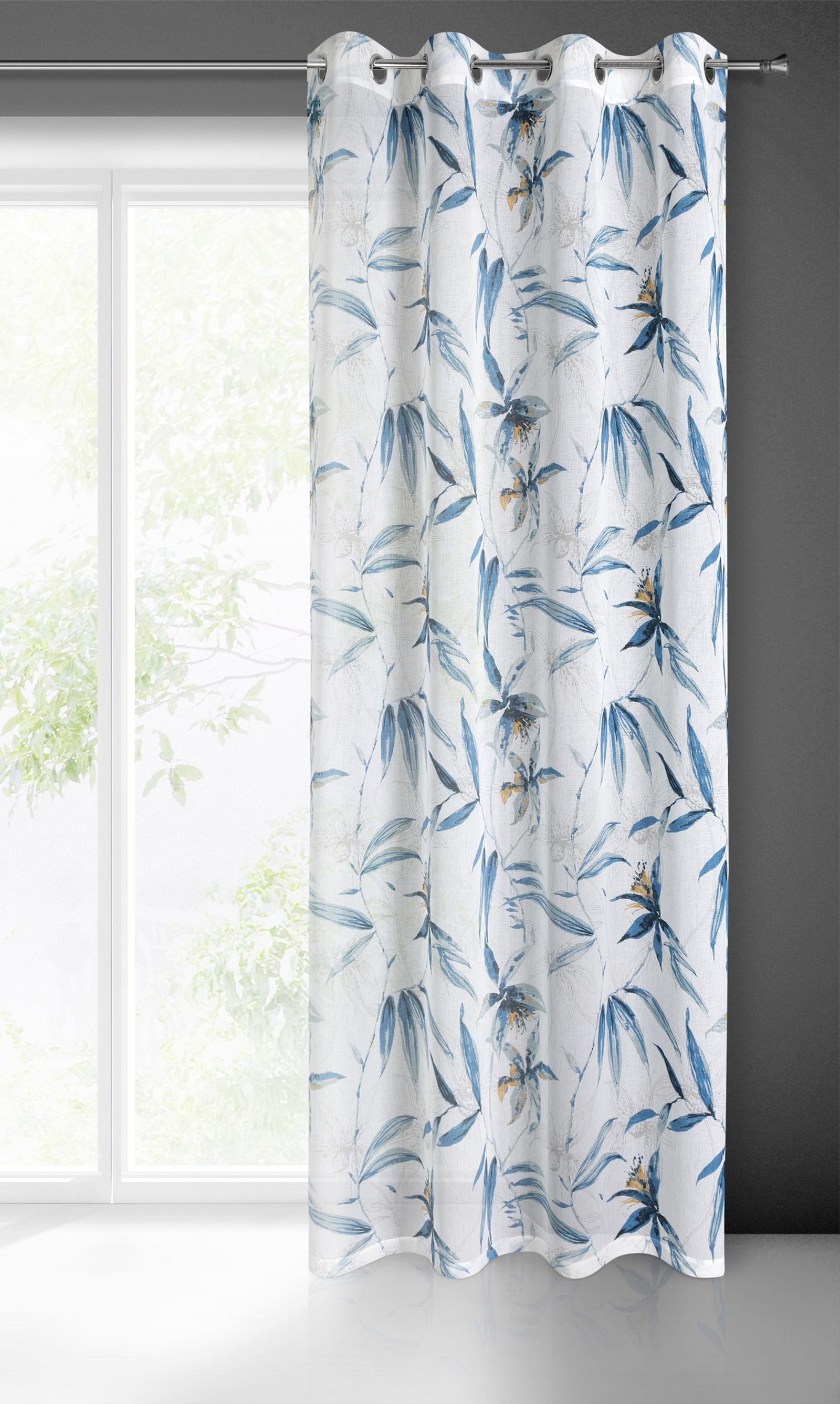 Gatavs aizkars no apdrukāta etamīna platums: 140 cm, garums: 250 cm, krāsa: balta, svars: 75 GSM, sastāvs: Sastāvs: 100% poliesteris.