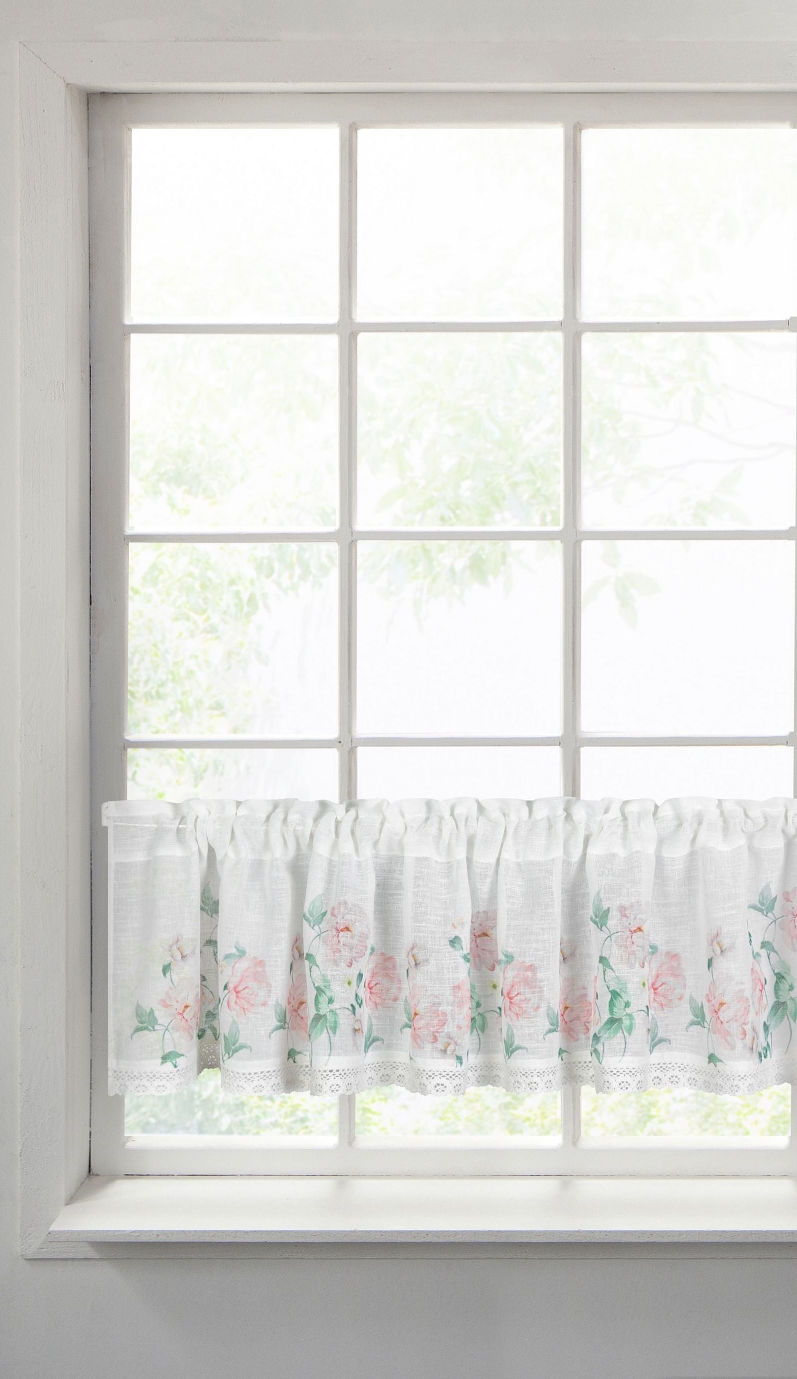 Ar mežģīnēm rotāta apdrukāta gultas pārklāja platums: 150 cm, garums: 30 cm, krāsa: balta, svars: 165 GSM, sastāvs: Sastāvs: 100% poliesteris