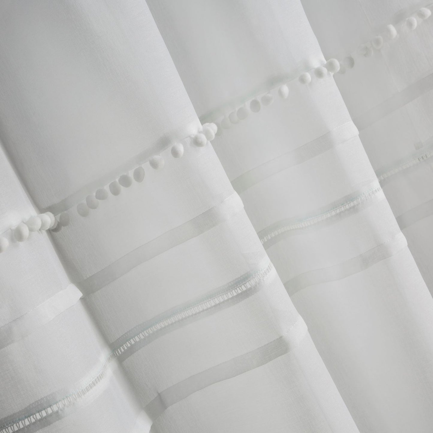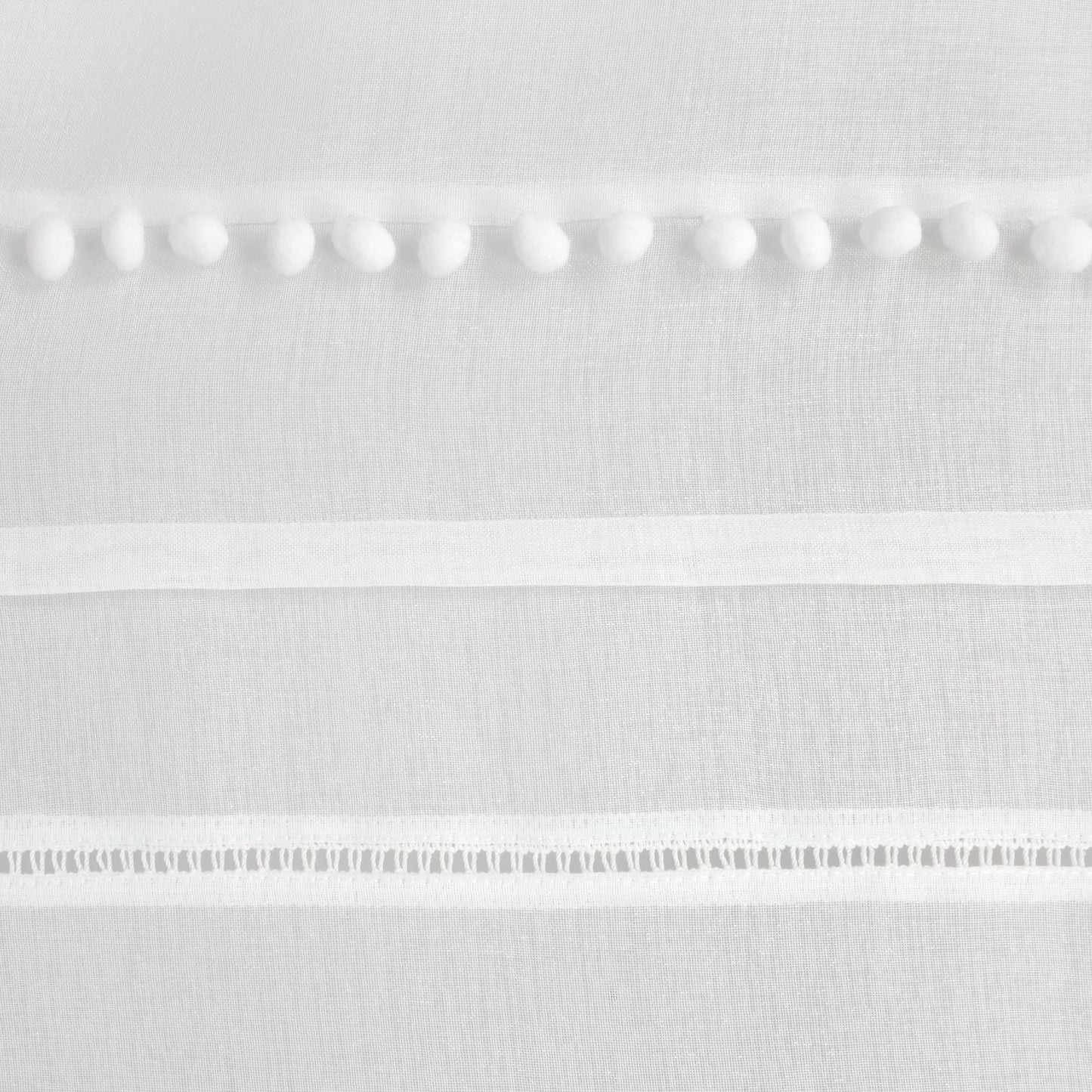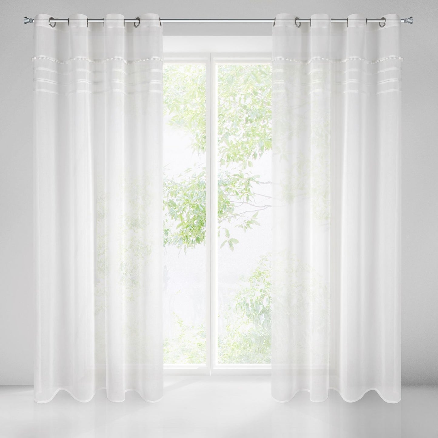 Elegants aizkars ar mūsdienīgu raksturu. Gludā loga apdare augšējā daļā ir rotāta ar četriem dažādiem rotājumiem, tostarp bumbuļiem un kristāliem. platums: 140 cm, garums: 250 cm, krāsa: balta, gramatūra: 66 GSM, sastāvs: Sastāvs: 100% poliesteris.