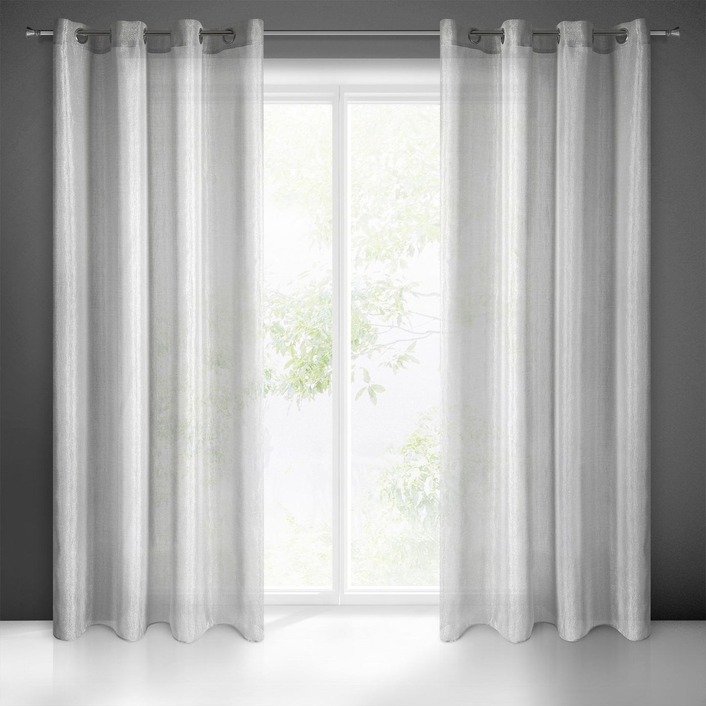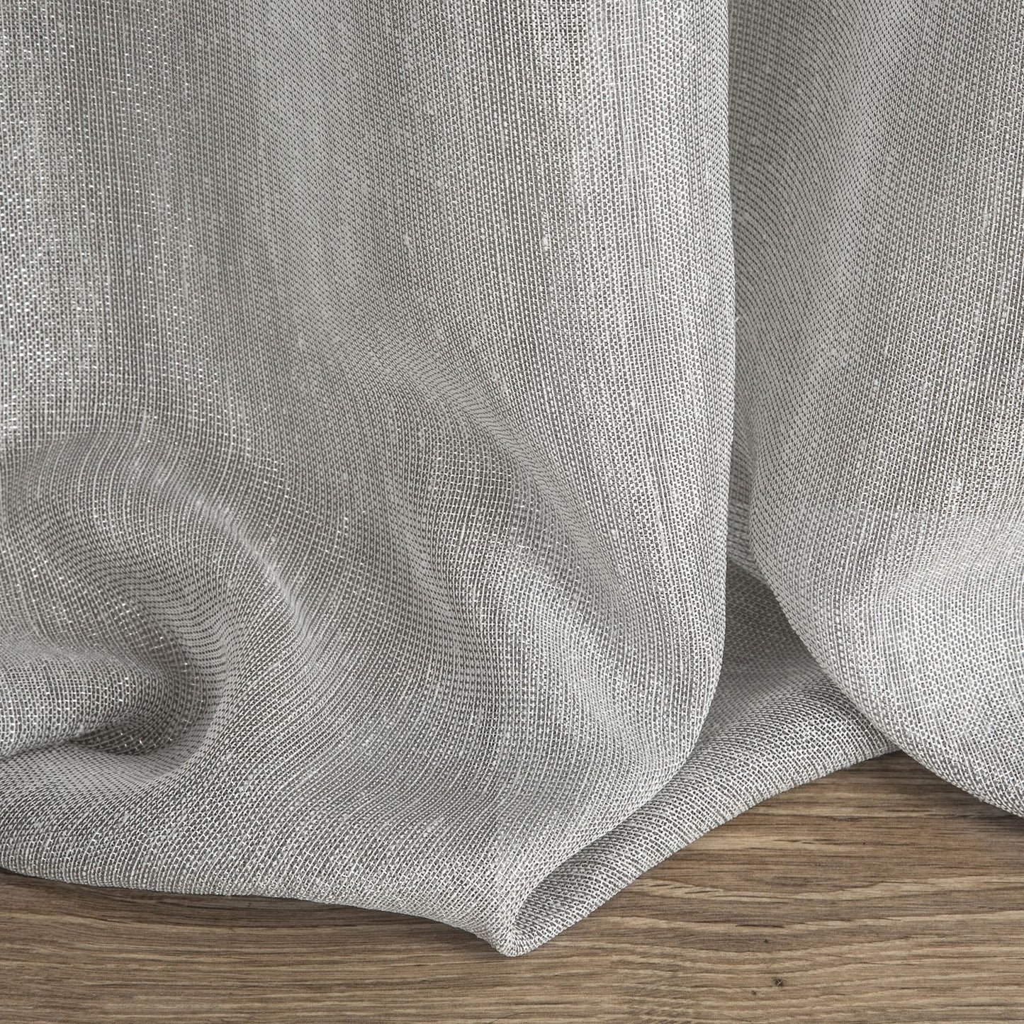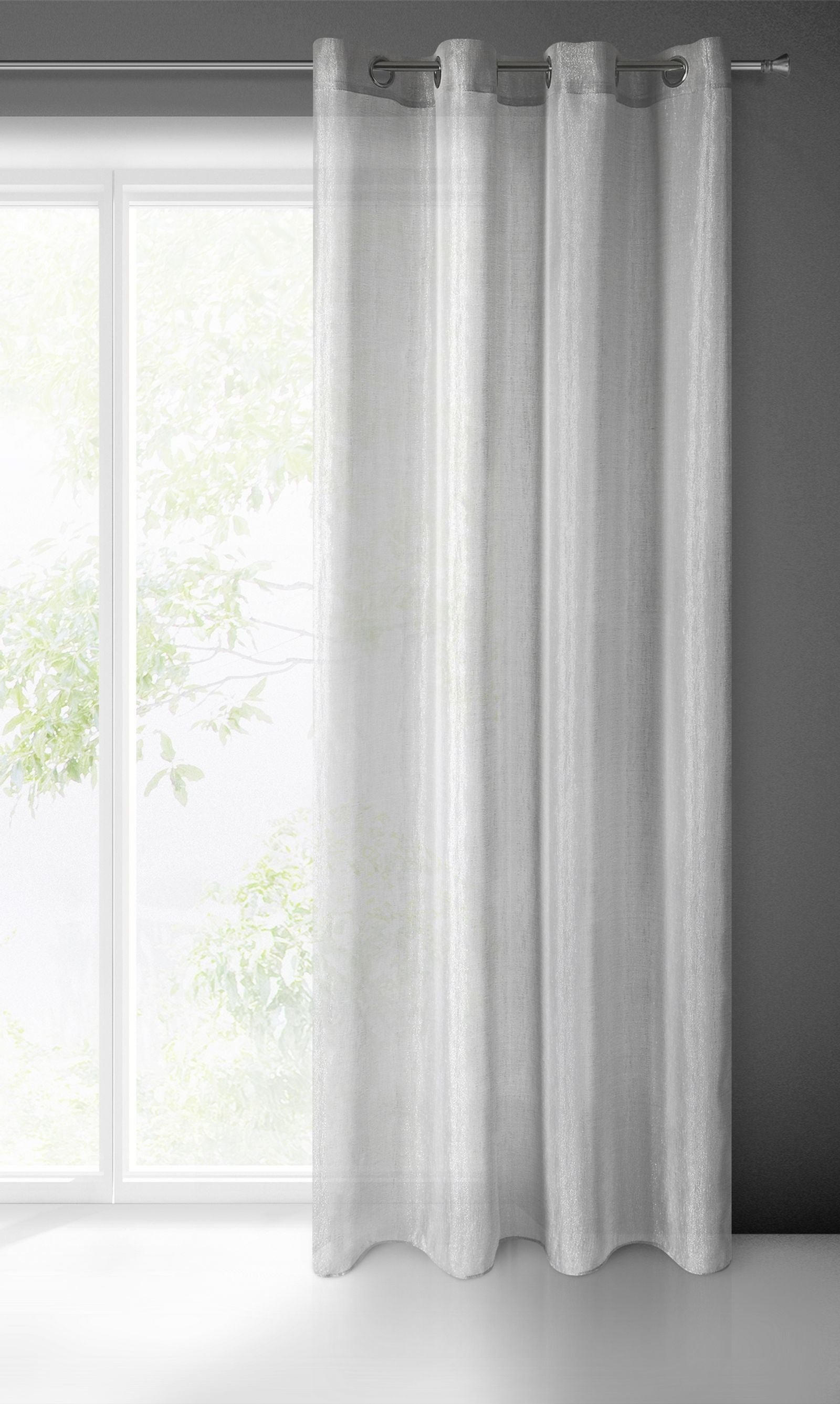 Minimālistisks aizkars no viegla sudraba auduma ir pārpīts ar smalkiem spīdīgiem diegiem. Vienkāršs loga rotājums interjeram, pat industriālam. Platums: 140 cm, garums: 250 cm, krāsa: pelēka, svars: 95 GSM, sastāvs: Sastāvs: 100% poliesteris.