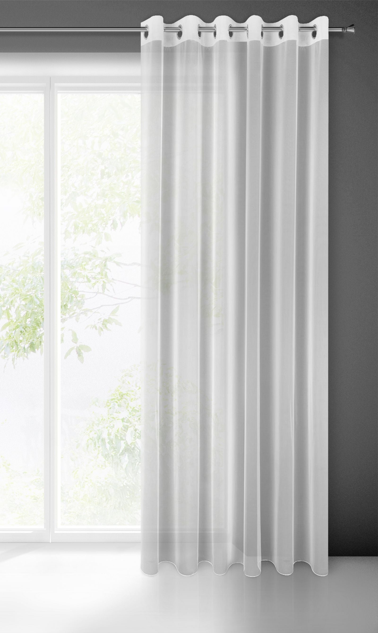 Ļoti maigs aizkars ar smalku, blīvu sieta struktūru. Spīdīgais audums garantē maksimālu privātuma sajūtu un ļauj interjerā ienākt gaismai. Platums: 135 cm, garums: 250 cm, krāsa: balta, svars: 35 GSM, sastāvs: Sastāvs: 100% poliesteris.