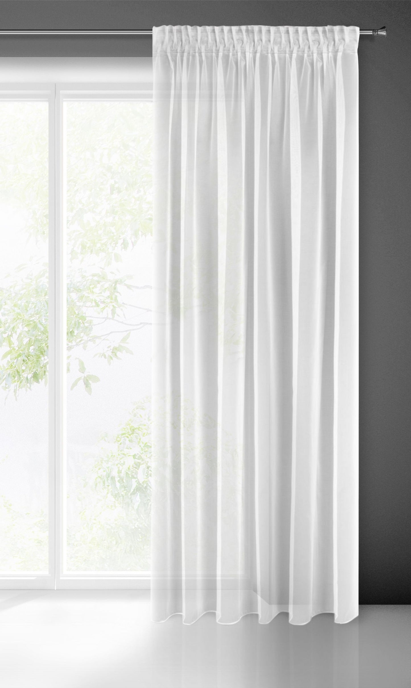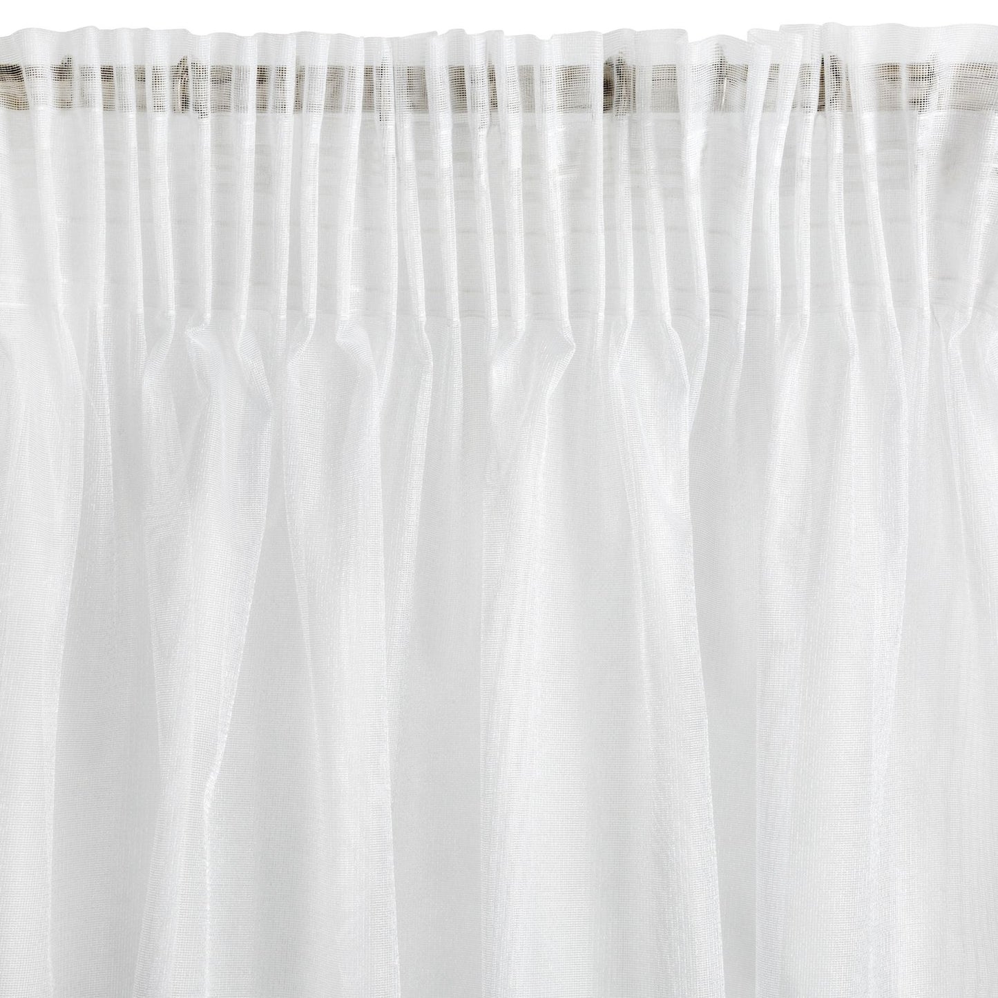 Ļoti maigs aizkars ar smalku, blīvu sieta struktūru. Spīdīgais audums garantē maksimālu privātuma sajūtu un ļauj interjerā ienākt gaismai. Platums: 135 cm, garums: 270 cm, krāsa: balta, svars: 35 GSM, sastāvs: Sastāvs: 100% poliesteris.