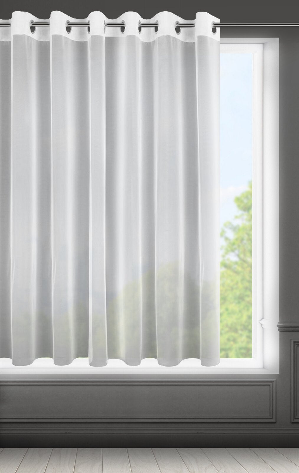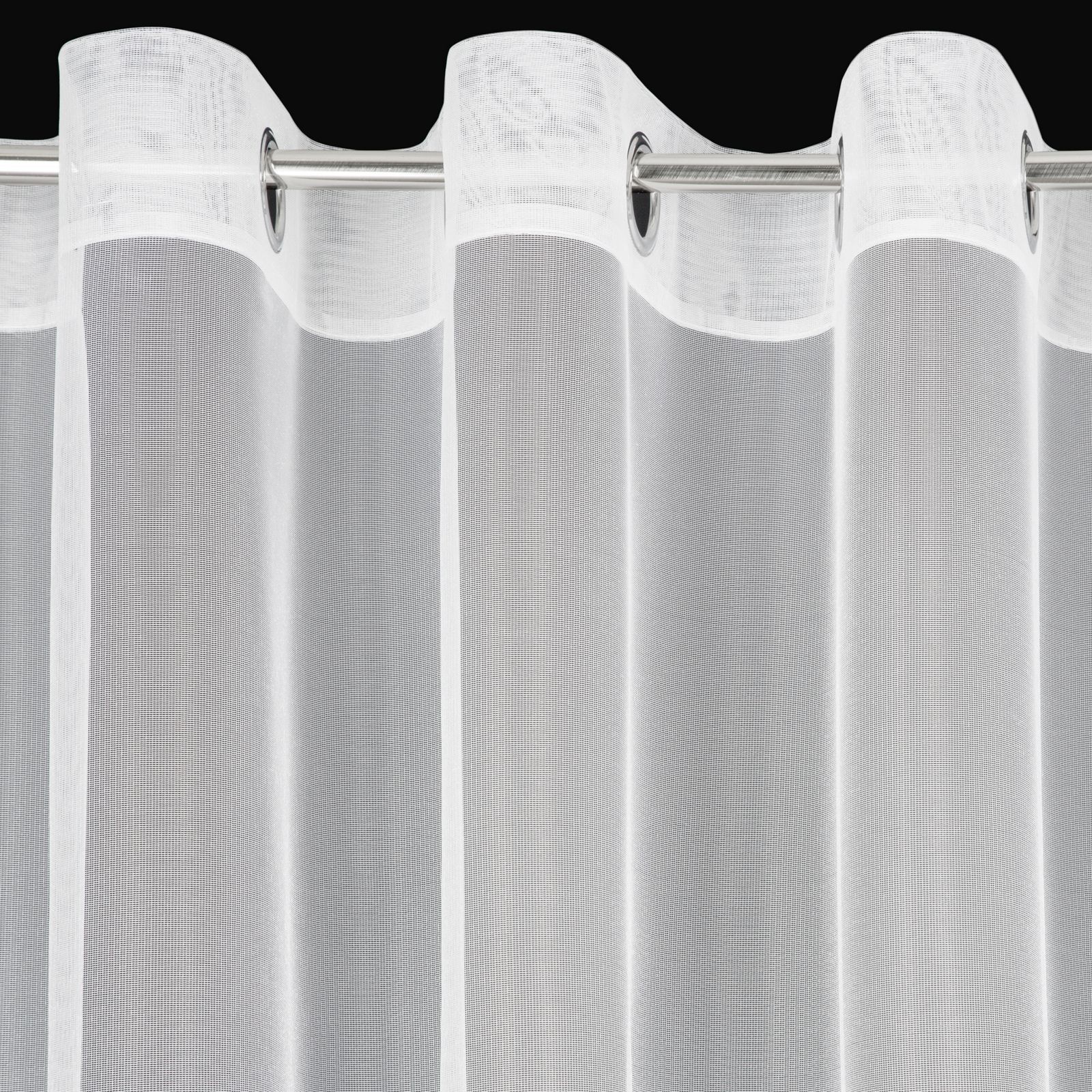 Ļoti maigs aizkars ar smalku, blīvu sieta struktūru. Spīdīgais audums garantē maksimālu privātuma sajūtu un ļauj interjerā ienākt gaismai. Platums: 350 cm, garums: 150 cm, krāsa: balta, svars: 35 GSM, sastāvs: Sastāvs: 100% poliesteris.