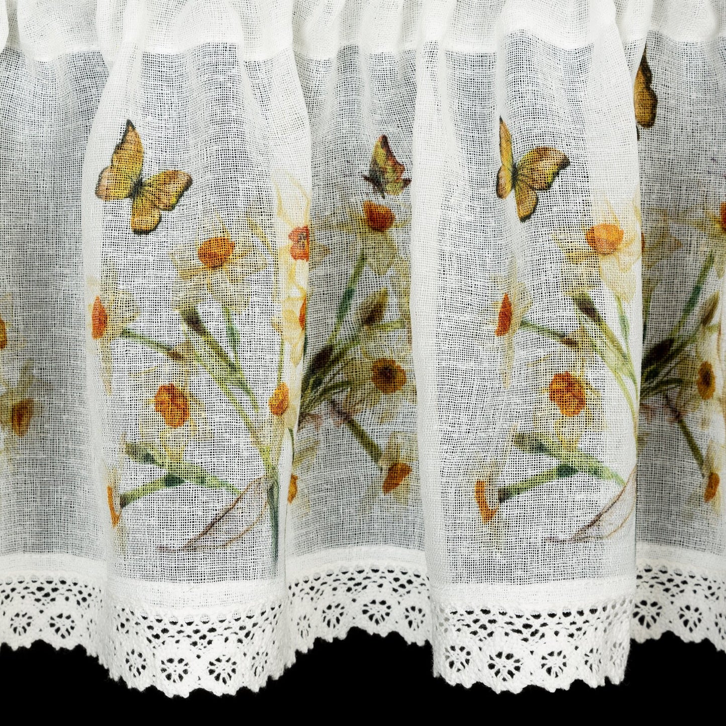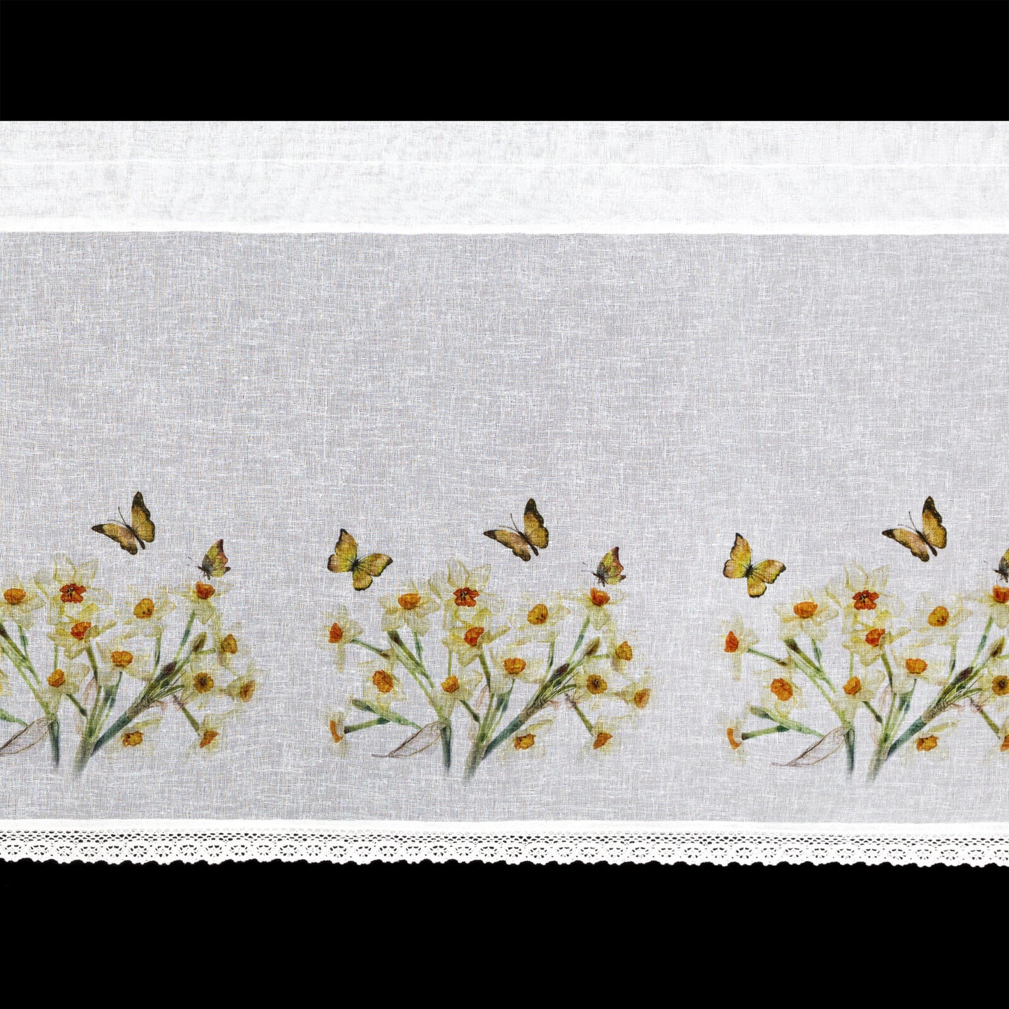 Ar mežģīnēm rotāta apdrukāta gultas pārklāja Platums: 150 cm, Garums: 60 cm, Krāsa: dzeltena, Svars: 110 GSM, Sastāvs: Sastāvs: 100% poliesteris.