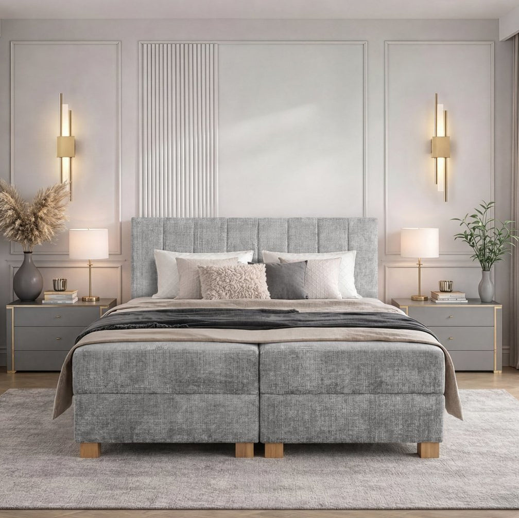Kontinentālā gulta ar gultasveļas kasti un iebūvētu matraci,