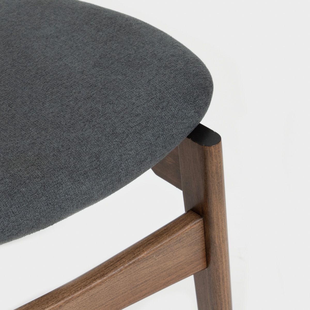Materiāls Krēsls ir izgatavots no augstas kvalitātes dižskābarža koka, nodrošinot izturību un stabilitāti. Polsterētais pelēkais sēdeklis ir ne tikai estētiski pievilcīgs, bet arī ērts un viegli tīrāms, padarot to par ideālu izvēli ikdienas lietošanai. Papildinformācija Svars: 5,25 kg Augstums no zemes līdz sēdeklim: 45 cm
