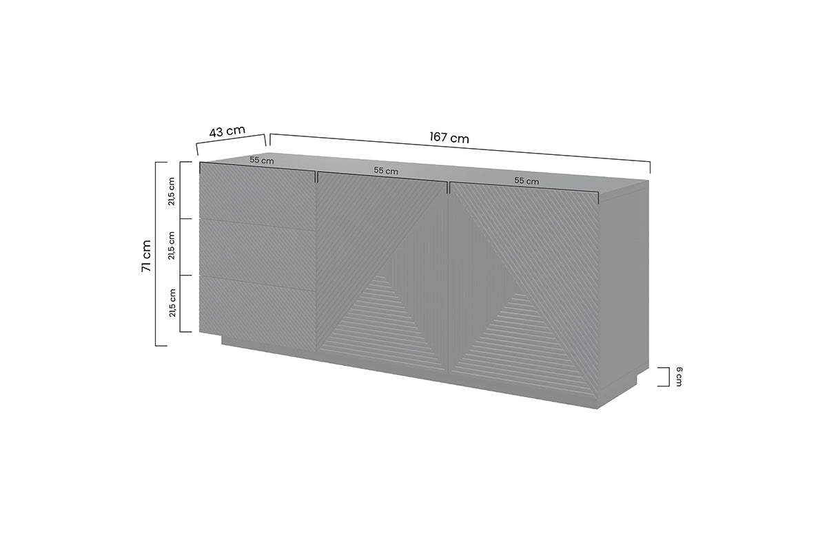 Izmēri un parametri Izmēri platums: 167 cm, augstums: 71 cm, dziļums: 43 cm.