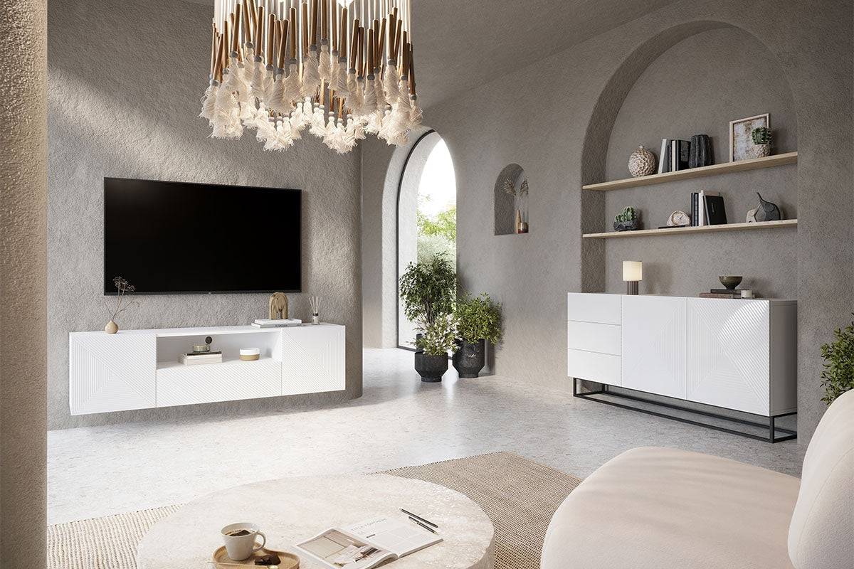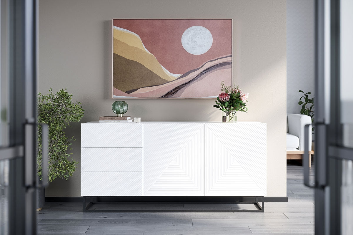 167 cm platā Oslo kumode ir izgatavota no augstas kvalitātes laminētas plātnes, kas pasargā no mitruma, skrāpējumiem un augstām temperatūrām.