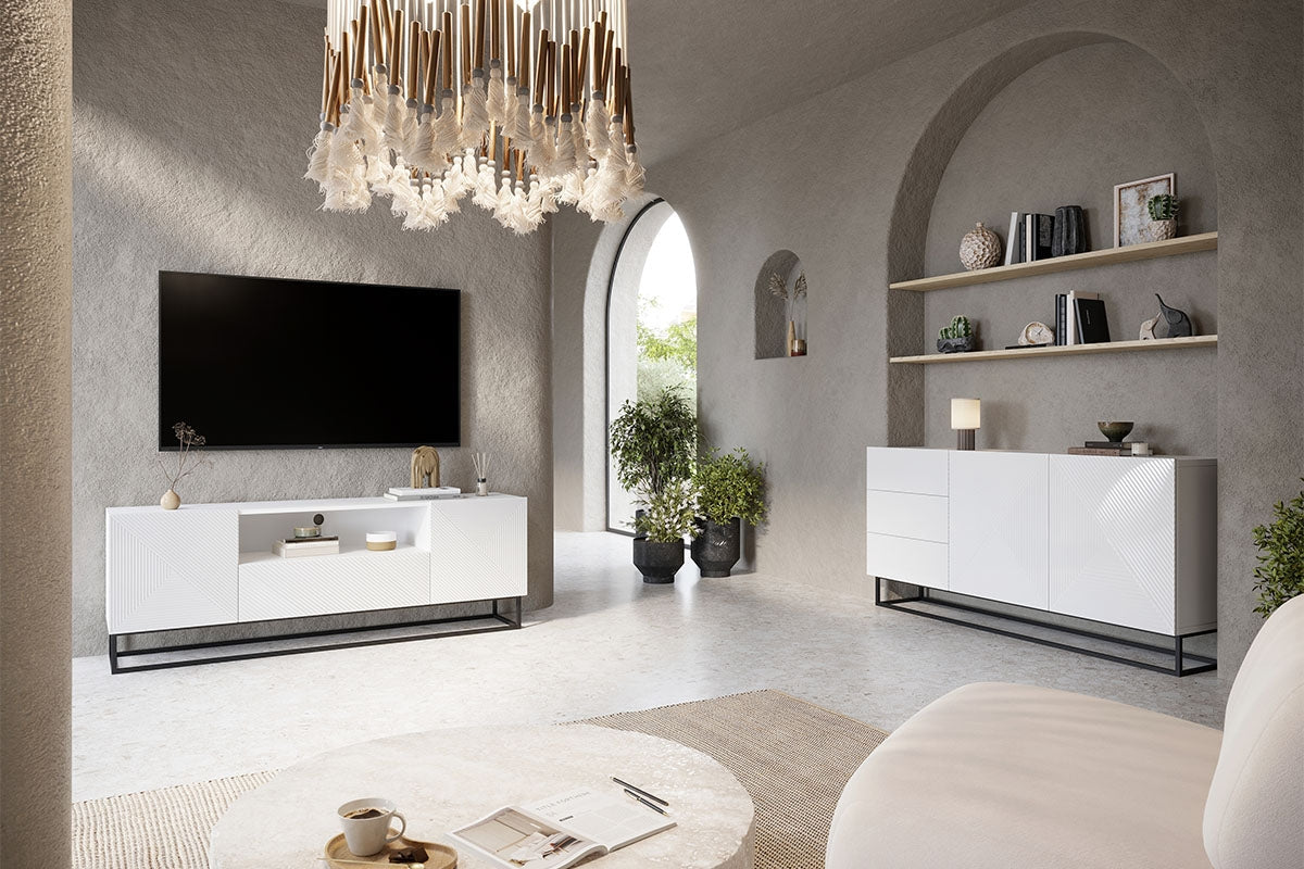 Oslo kumode ir piedāvājums, kas lieliski izskatās elegantā un modernā interjerā. Vēl viena aprakstītās struktūras priekšrocība ir labi izplānota iekšējā telpa, kas sastāv no trim atvilktnēm un plaukta, kas paslēpts aiz durvju pāra.
