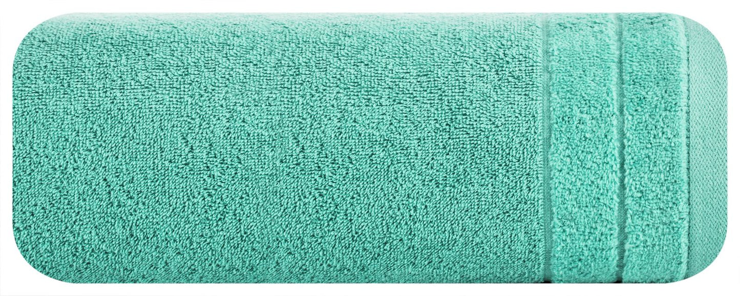 Elegants vienkrāsains dvielis no smalka un ļoti labi uzsūcoša frotē auduma. Malas rotātas ar smalku samta apmali. Viegli mazgājams, ilgnoturīgas krāsas. platums: 70 cm, garums: 140 cm, krāsa: piparmētra, svars: 500 GSM, sastāvs: Sastāvs: 100% kokvilna.