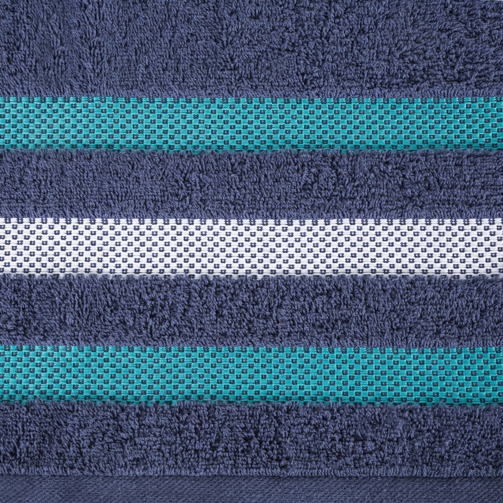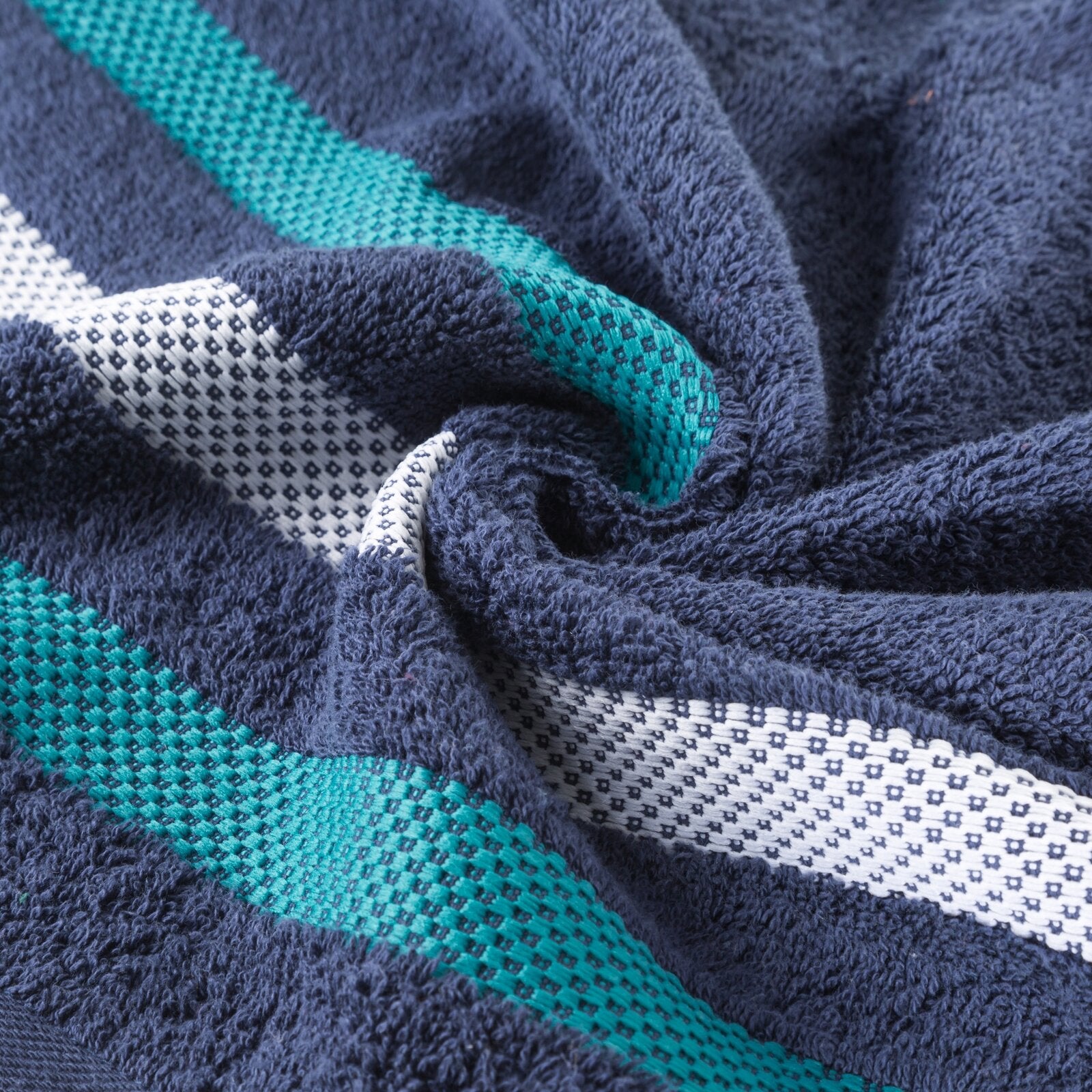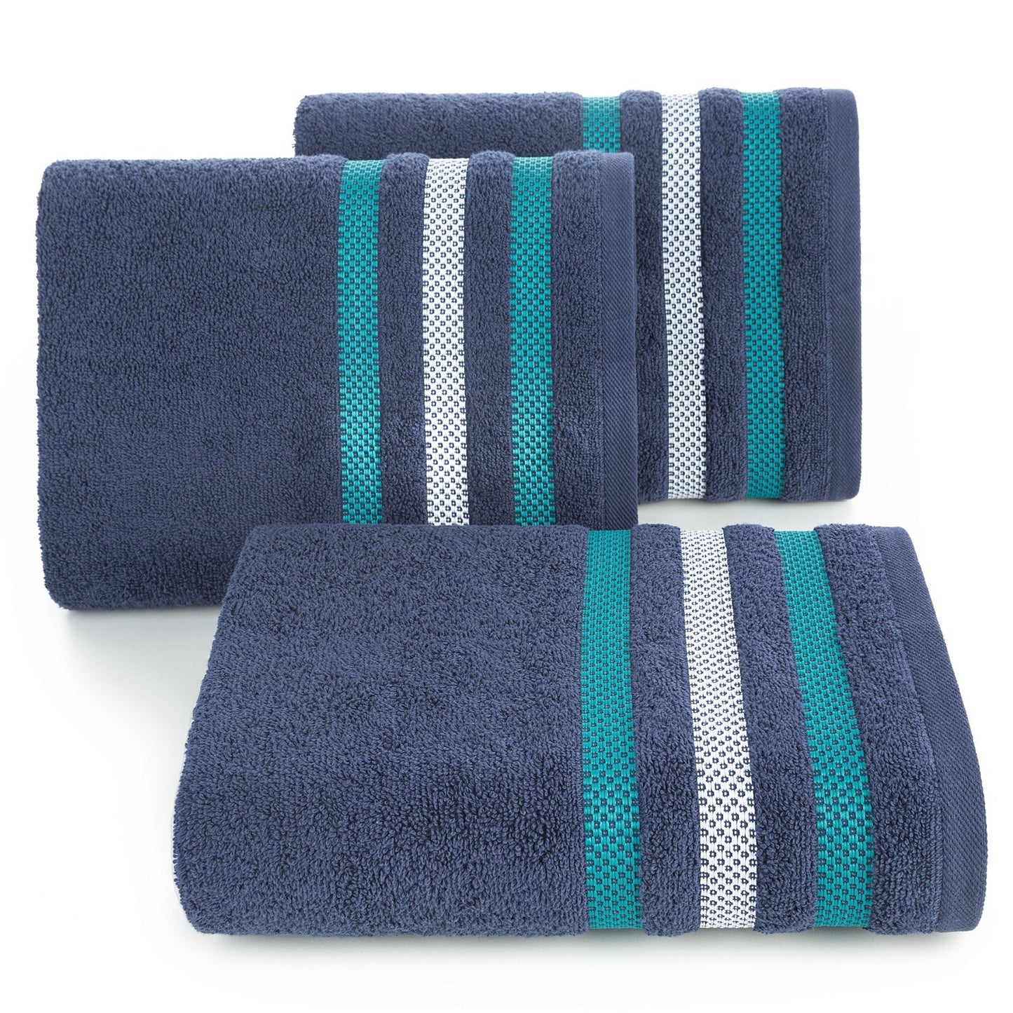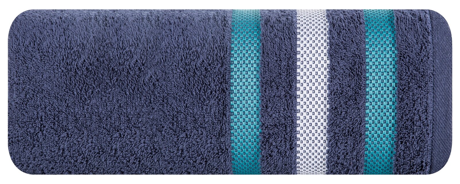 Klasisks vannas dvielis no uzsūcoša kokvilnas frotē auduma. Minimālistiska velūra apmale ar spīdīgu metālisku pavedienu. Platums: 70 cm, garums: 140 cm, krāsa: tumši zila, svars: 500 GSM, sastāvs: Sastāvs: 100% kokvilna; 100% poliesteris.