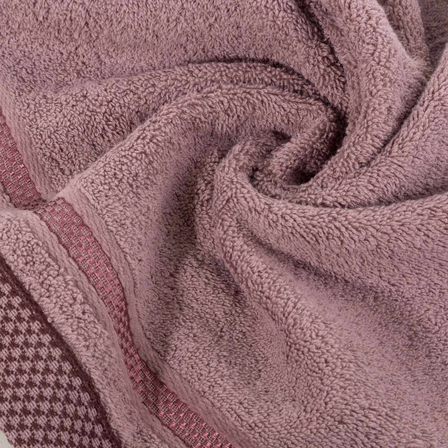 Dvieļu ar dekoratīvu svītrainu malu platums: 70 cm, garums: 140 cm, krāsa: ceriņi, svars: 485 GSM, sastāvs: Sastāvs: 100% kokvilna; 95% kokvilna, 5% poliesters
