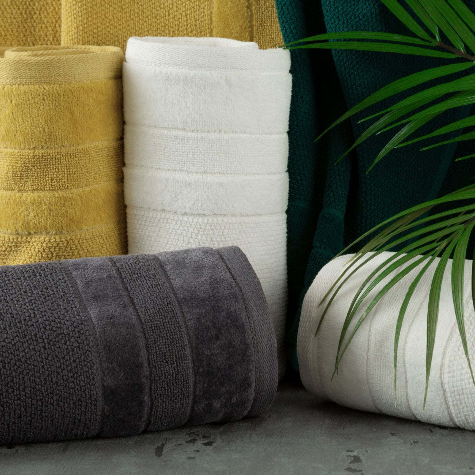 Mīksts un ļoti pūkains vannas dvielis ar minimālisma stila sajūtu. Plašais samta apmale piešķir vieglu spīdumu. Absorbējoša kokvilna nekrāso Platums: 70 cm, garums: 140 cm, krāsa: sinepju, svars: 500 GSM, sastāvs: Sastāvs: 100% kokvilna.