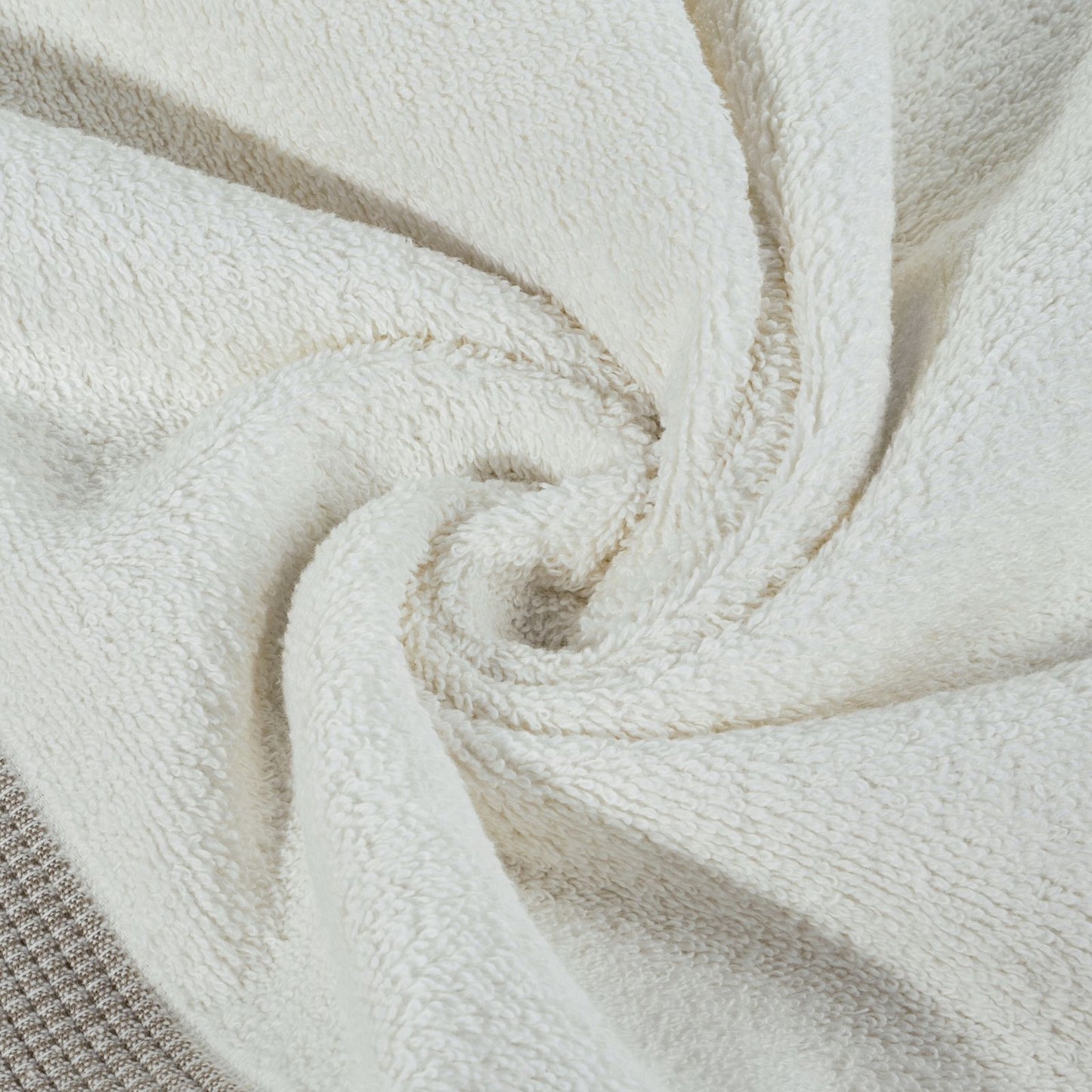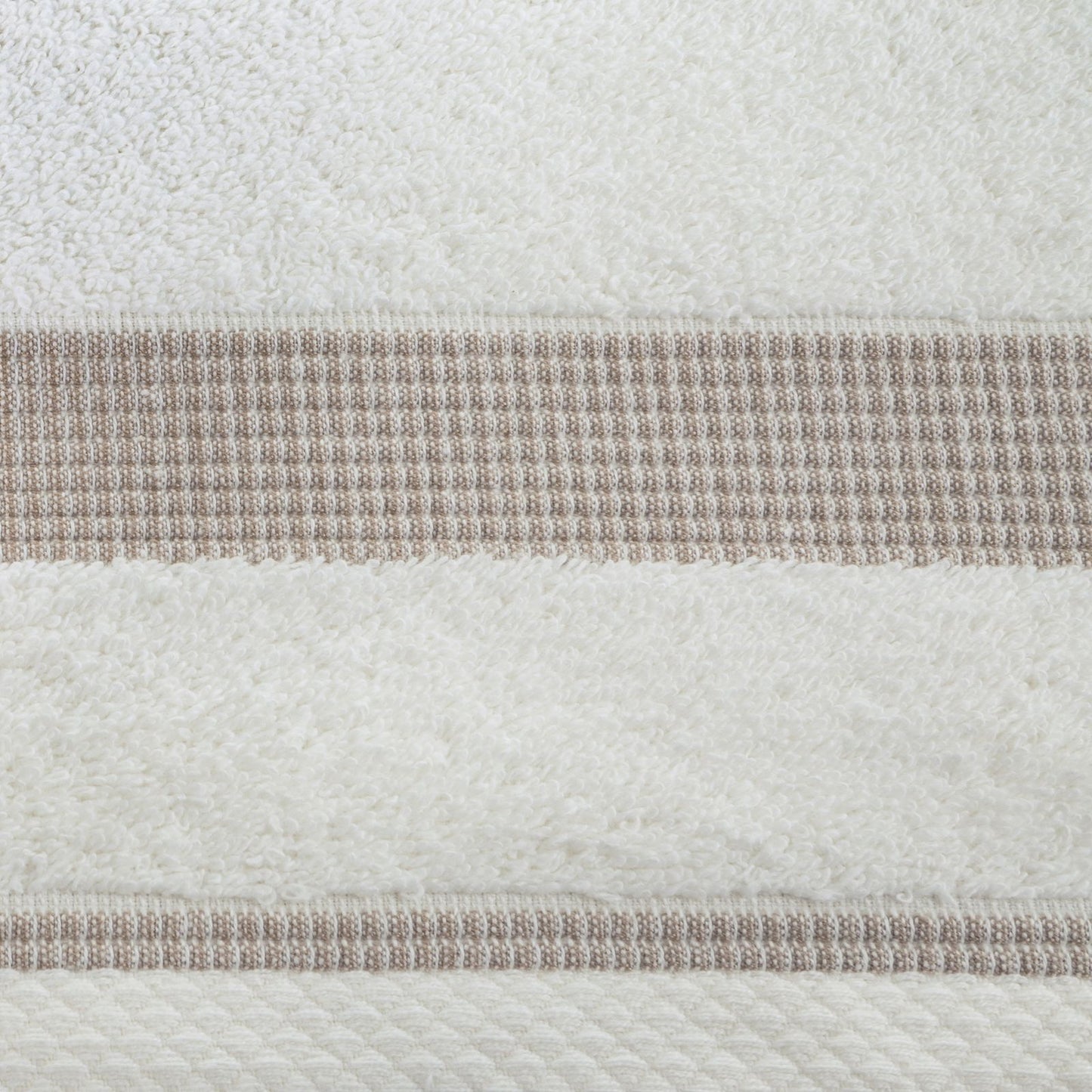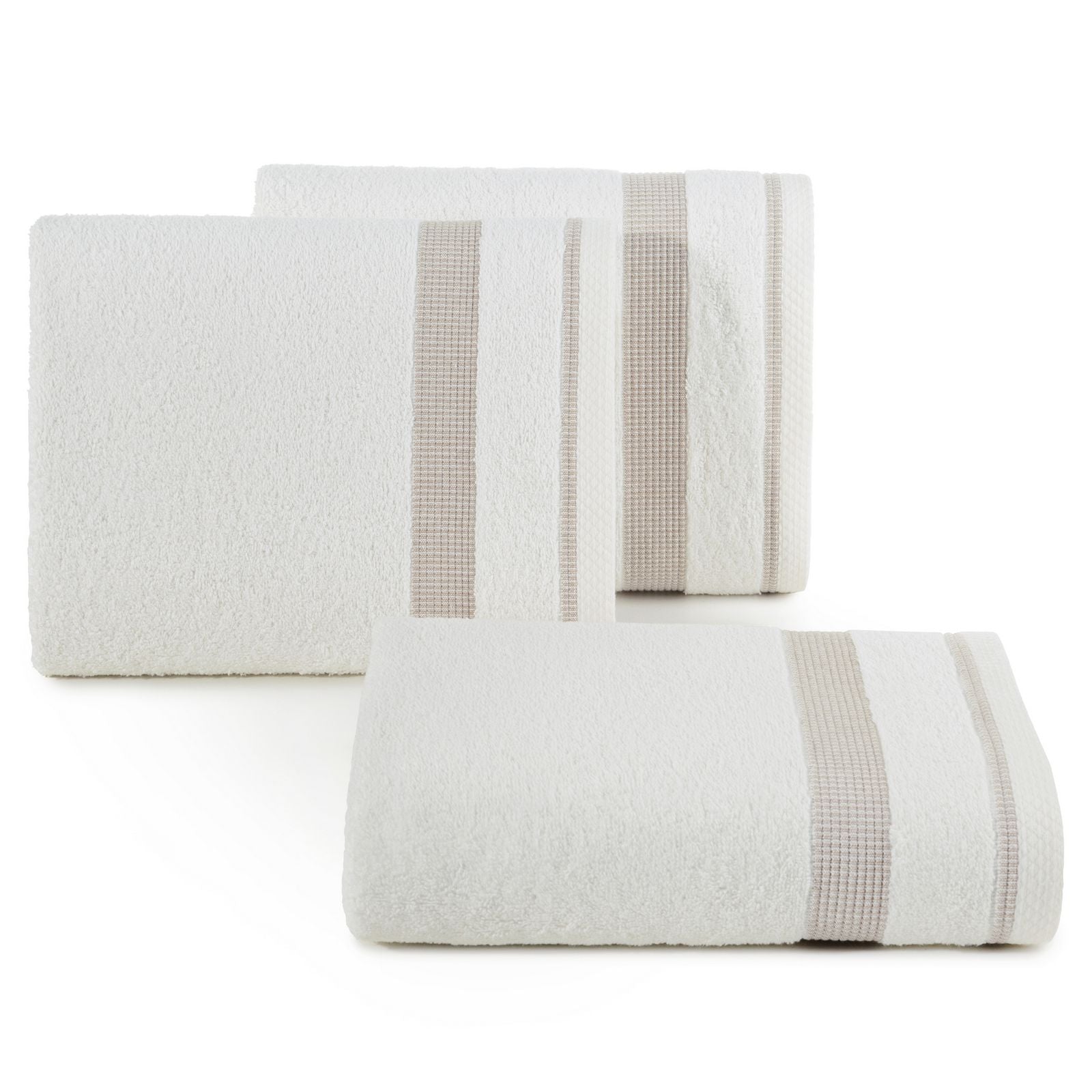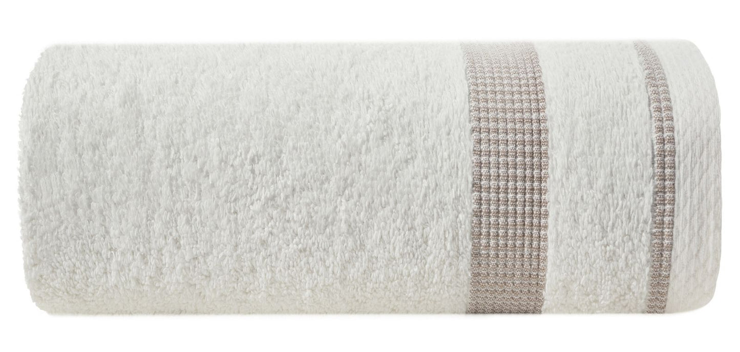 Dvieļu ar dekoratīvu svītrainu malu platums: 70 cm, garums: 140 cm, krāsa: krēma, svars: 500 GSM, sastāvs: Sastāvs: 100% kokvilna; 99% kokvilna, 1% poliesteris