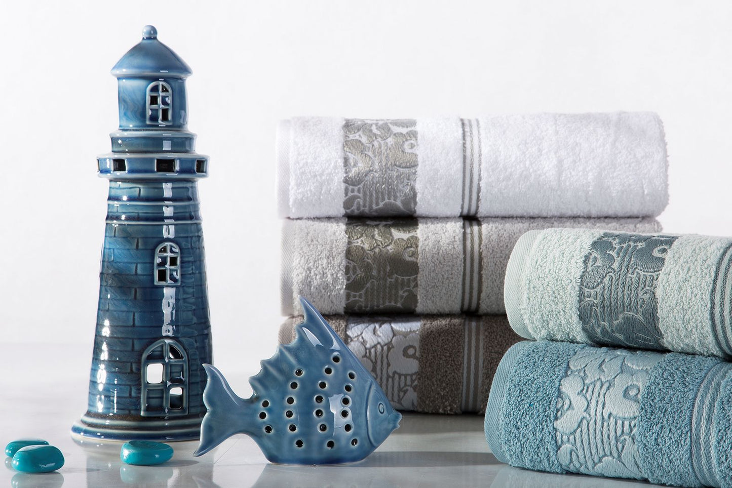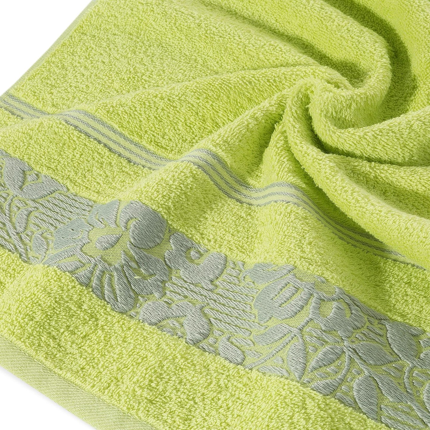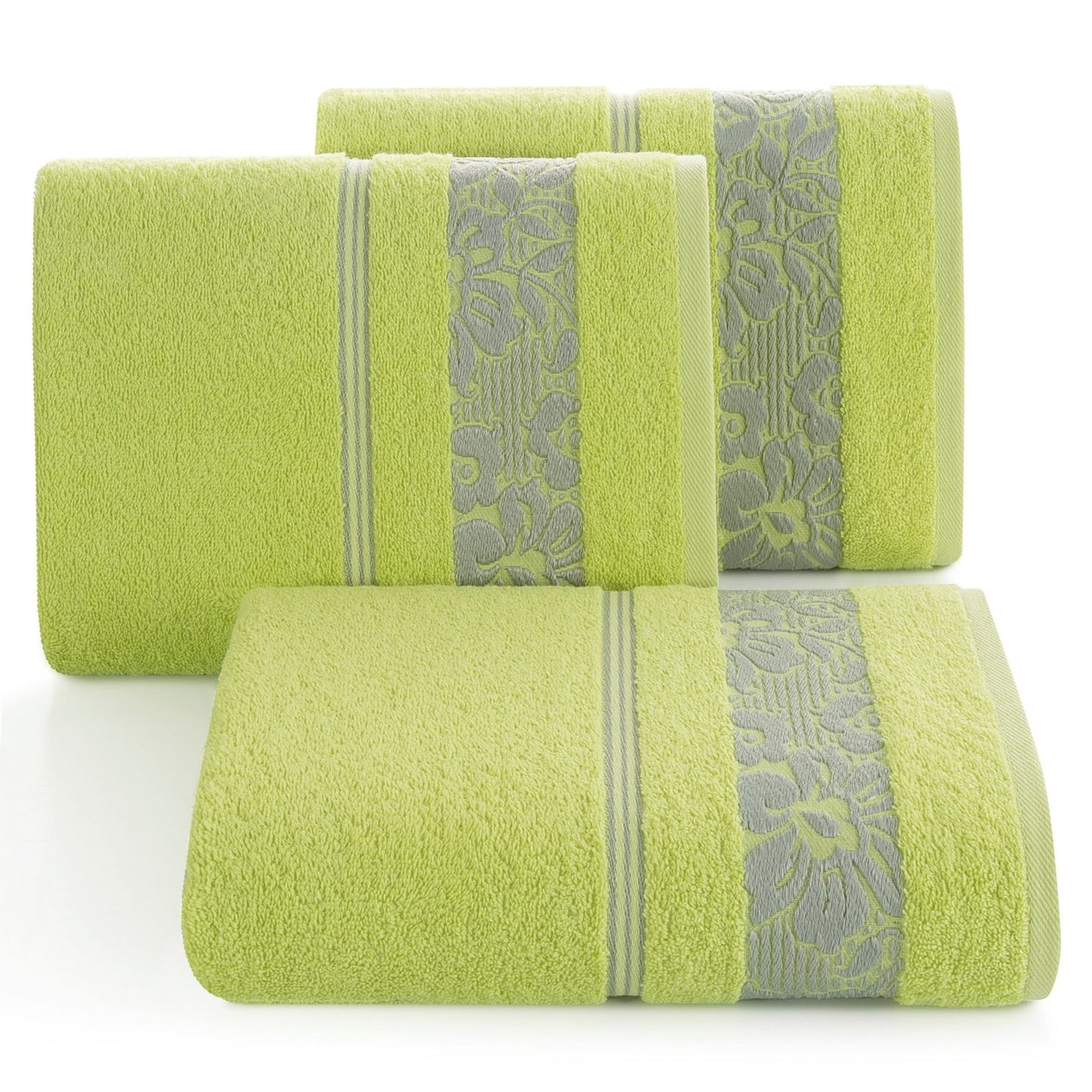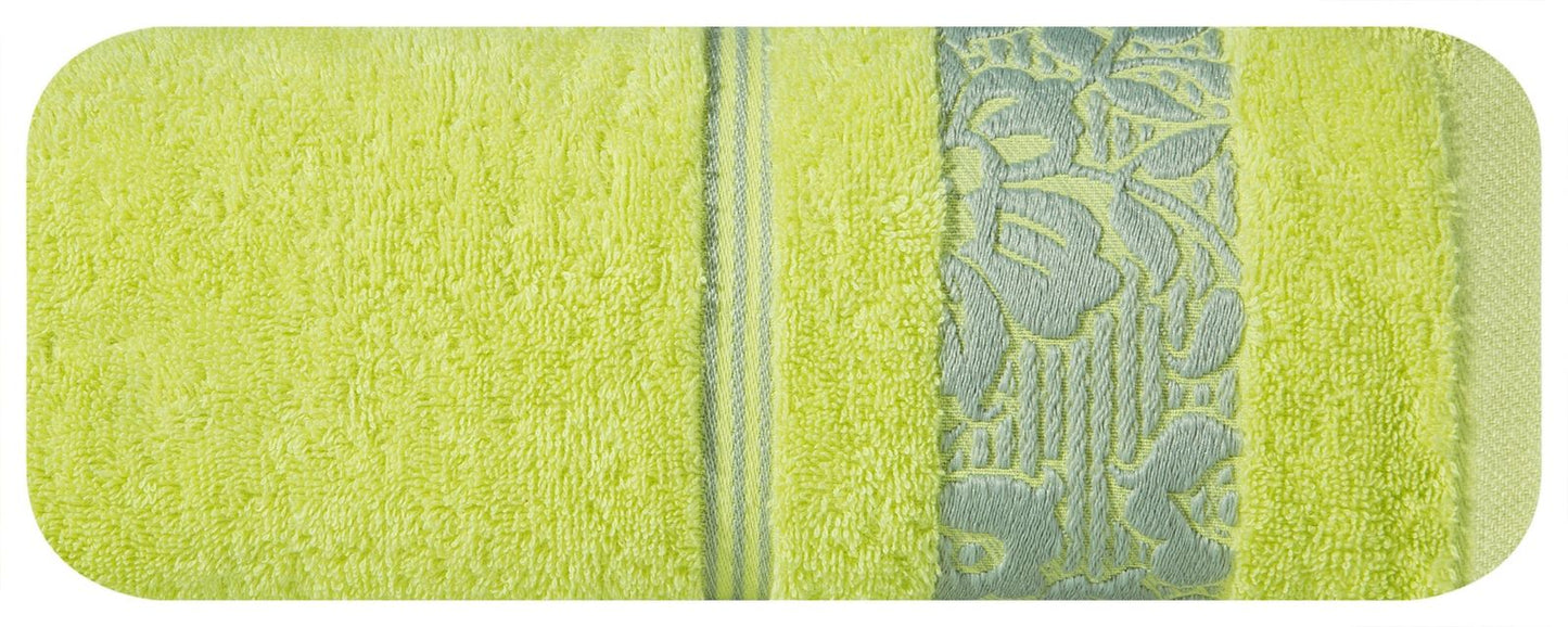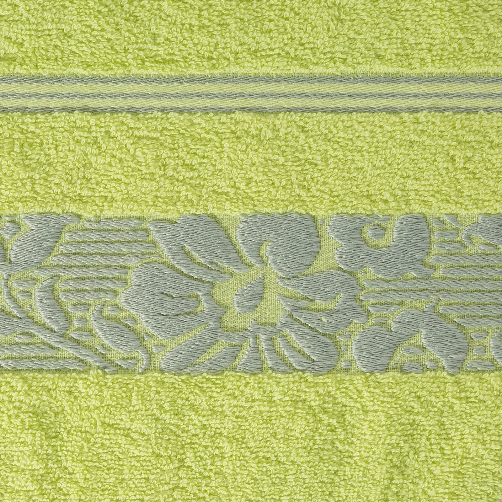 Elegants vannas dvielis no mīksta un uzsūcoša kokvilnas frotē, rotāts ar žakarda apmali ar ziedu rakstu atbilstošā krāsā. Ļoti mīksts un patīkams platums: 70 cm, garums: 140 cm, krāsa: zaļa, svars: 500 GSM, sastāvs: Sastāvs: 100% kokvilna; 70% poliesteris, 30% kokvilna.