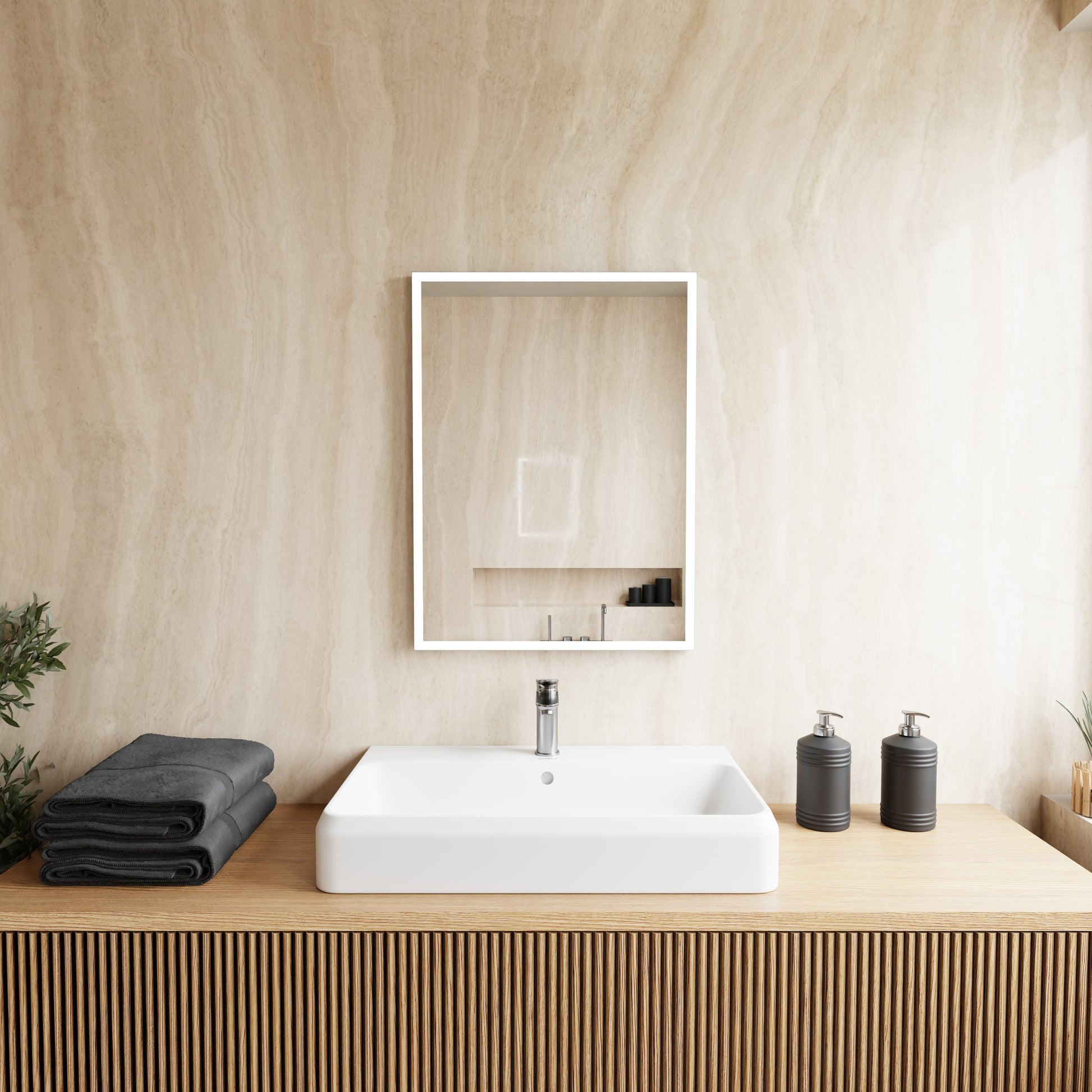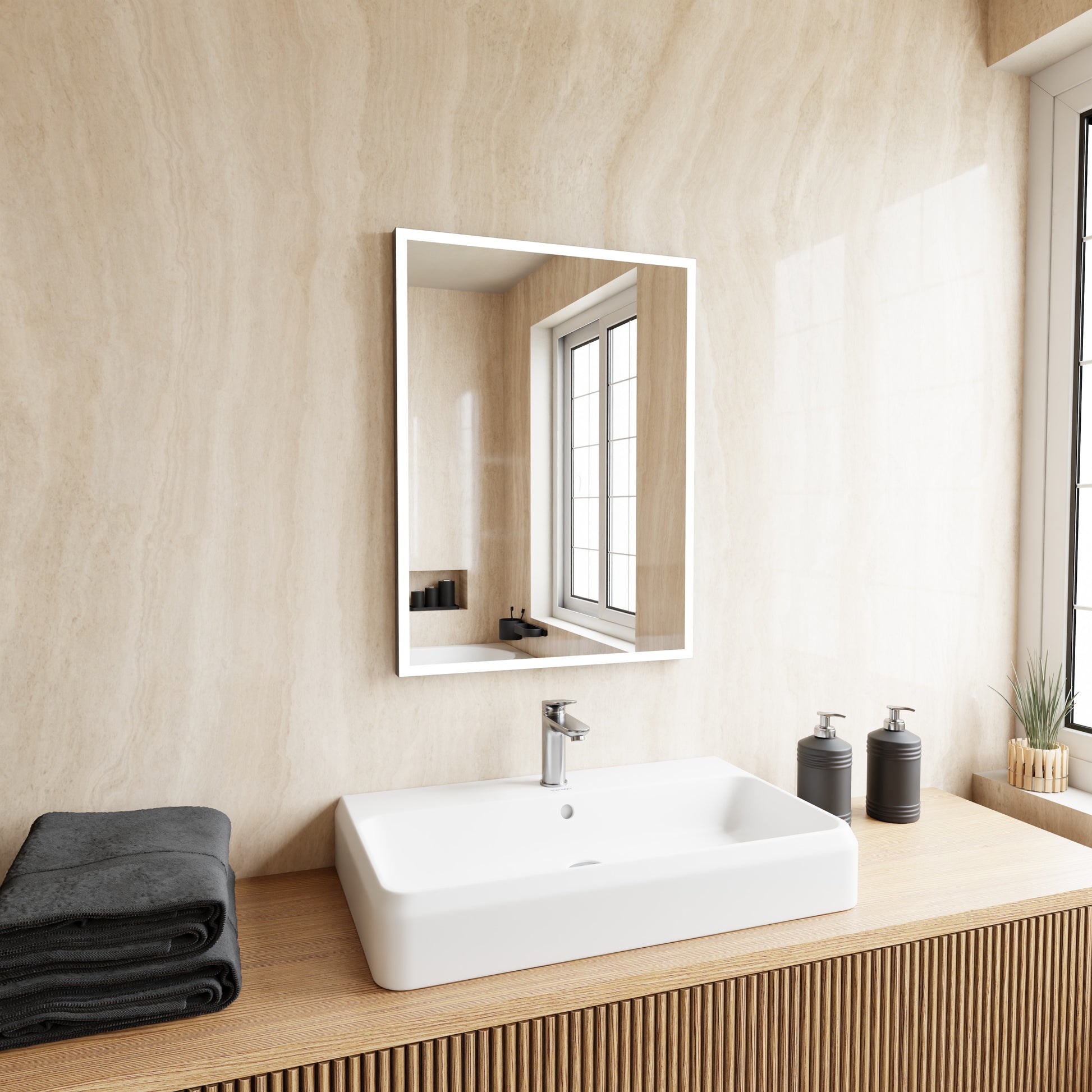 Vannas istabas spogulis ar LED apgaismojumu, dekoratīvs alumīnija rāmis, melns, 60x80 cm, vienkrāsains melns, augstas kvalitātes, ekskluzīvs, piemērots gaiteņiem un vannas istabām, LED fona apgaismojums.